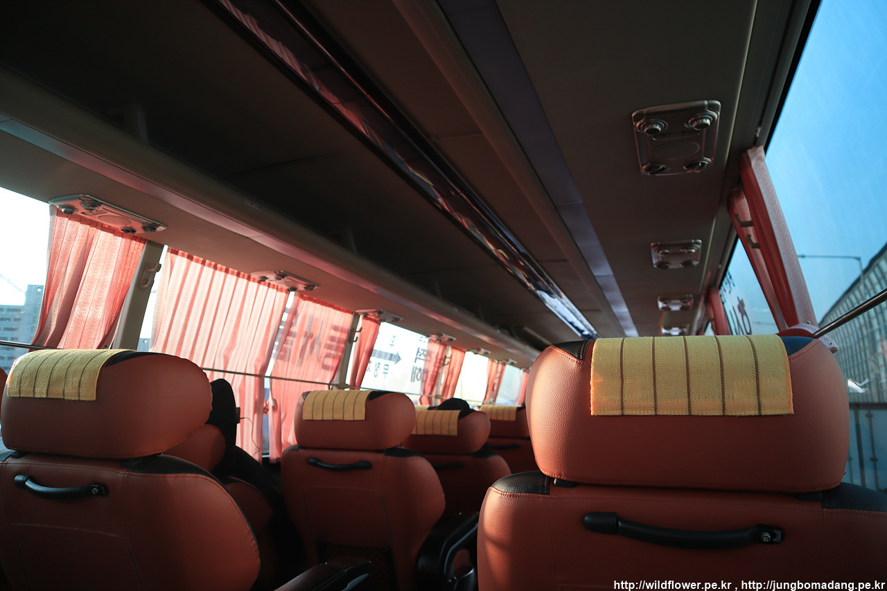 그렇게 6시 40분 횡계를 경유해서 강릉으로 가는 버스에 탔는 데,대박! 45인승 버스인 줄 알았는 데 28인승 우등 버스인 겁니다. 어쩐지 어플로 예매할 때 뒷좌석만 예매가 다 된게 이상하다 했습니다. 동서울에서 횡계는 14600원이고 2시간 30분 소요된다는 데 10분정도 더 소요됩니다.