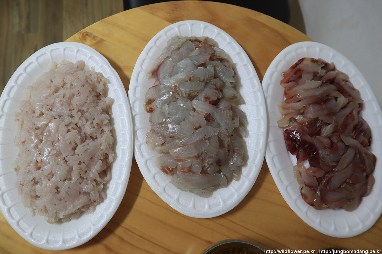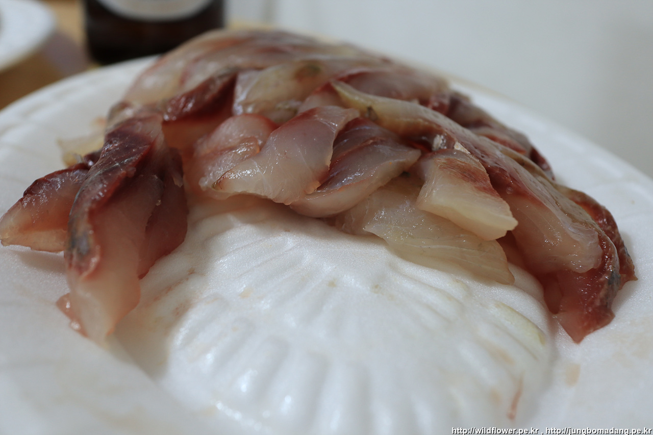 요래 회 아래 아무것도 깔리지 않고 전부 회 입니다. 결국 두접시 반만 성공하고 나머지는 냉장고 냉동칸에 비닐에 넣어 얼려버리고 취침