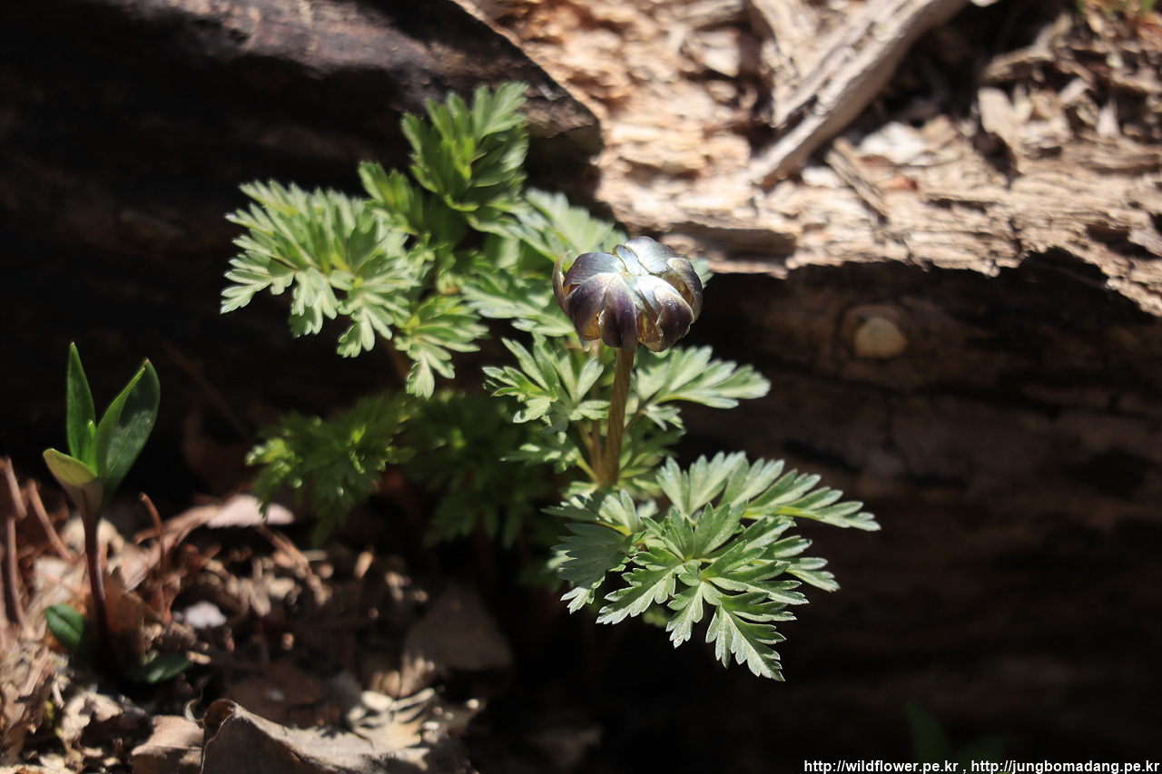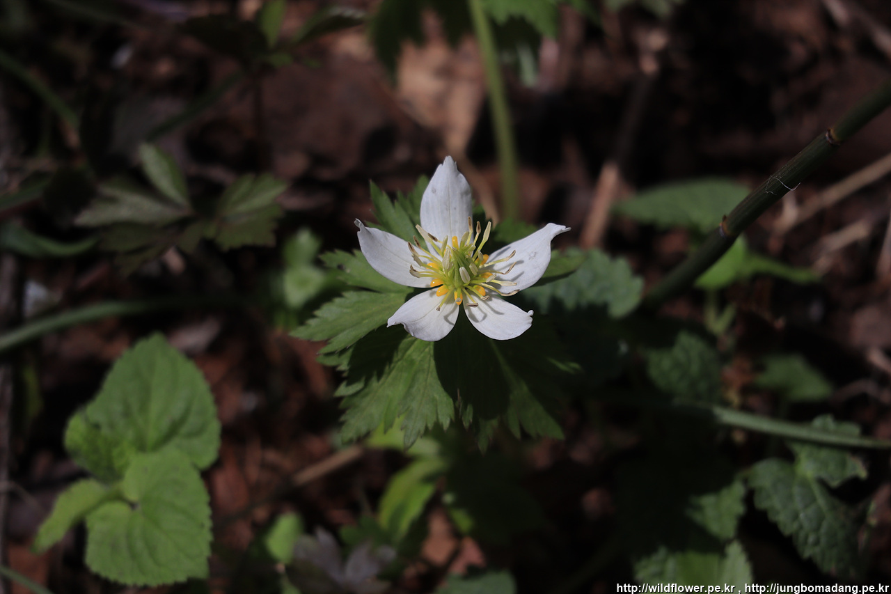 너도바람꽃 한 개체가 힘겹게 피어 있습니다.