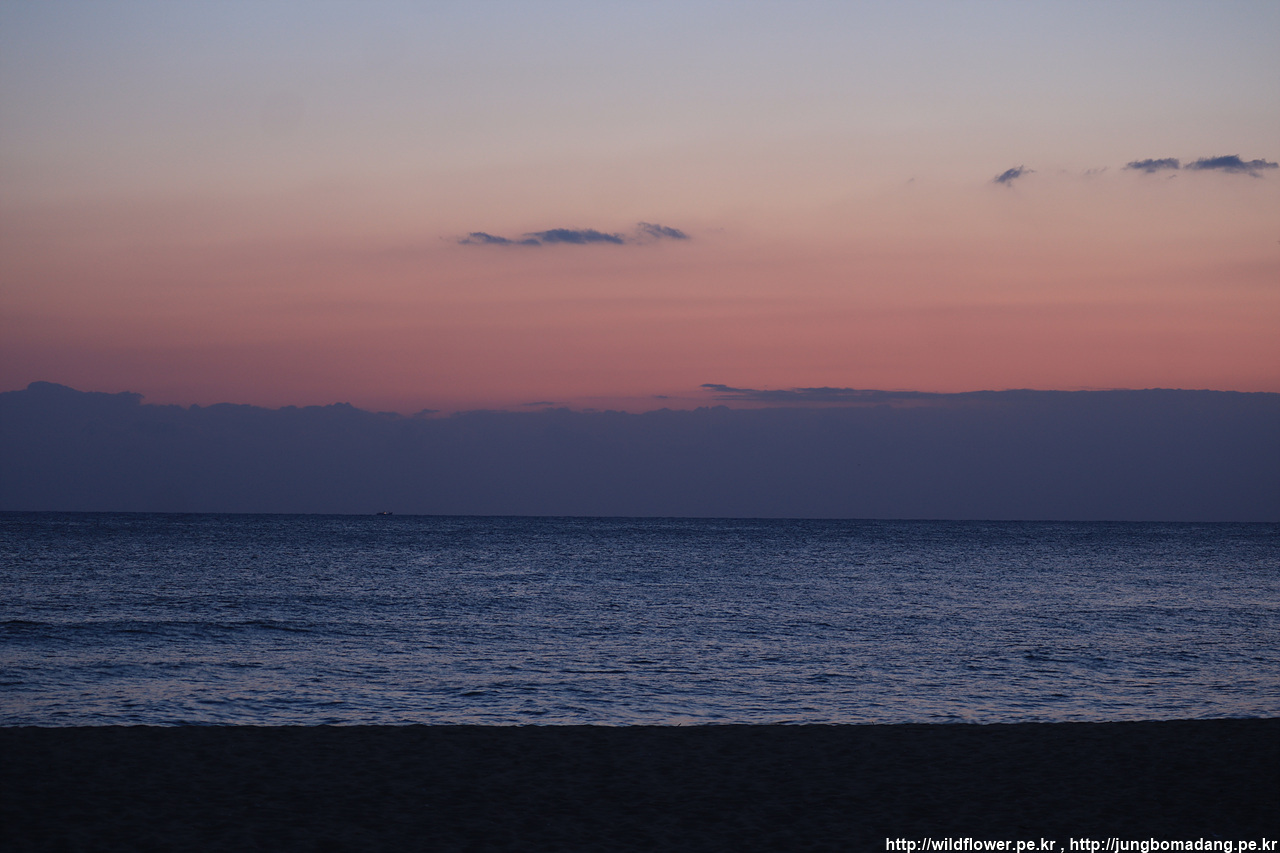 다음날이 되어 무려 1시간을 걸어서 송정해변에 도착합니다. 일출 5시 39분에 맞추려고 새벽 3시 30분에 기상했네요. 서울이 아니기에 버스는 7시나 되어야 운행하니...