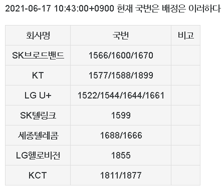 대표번호 출처: 전국대표번호 - 나무위키 (namu.wiki)