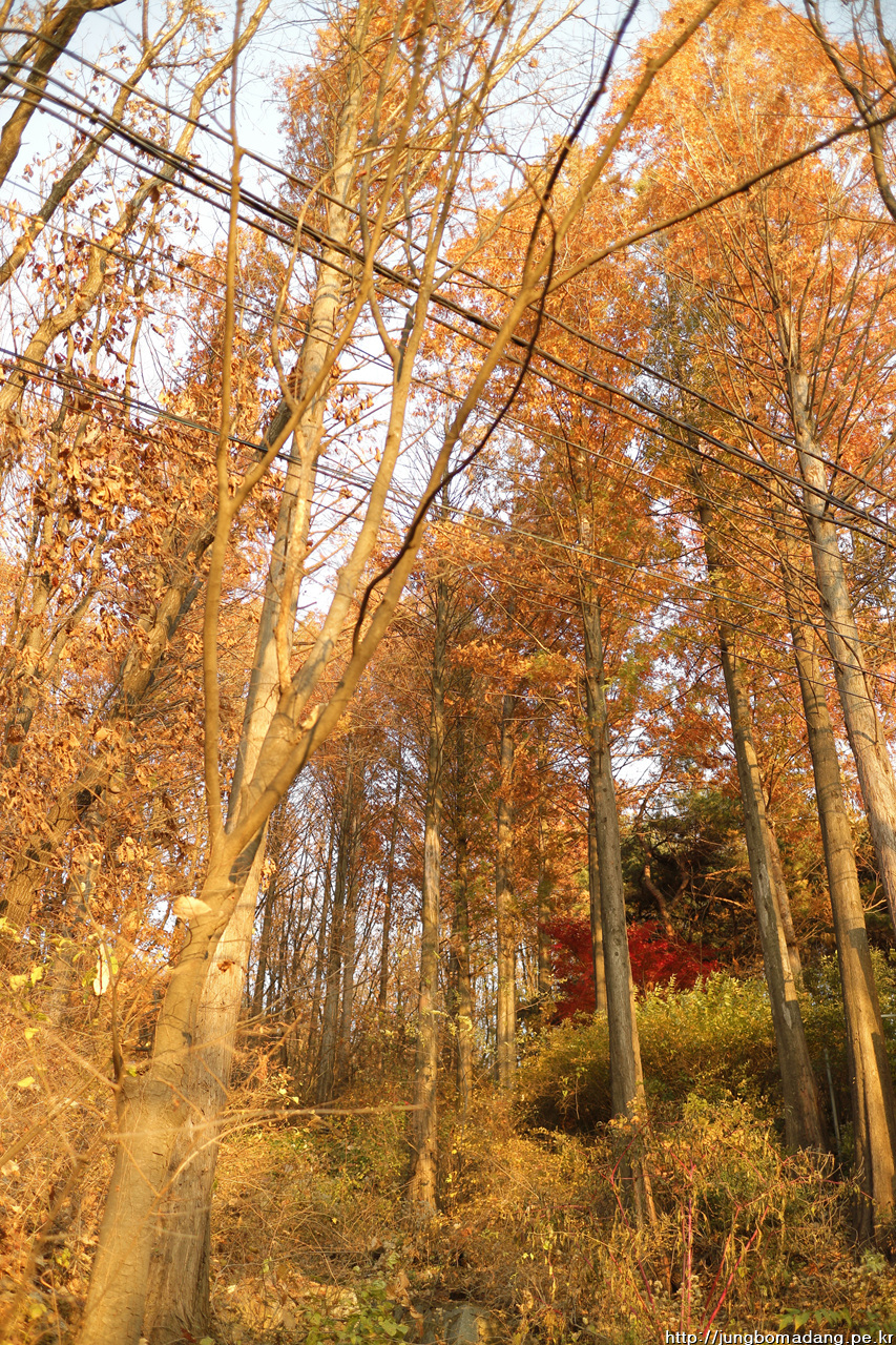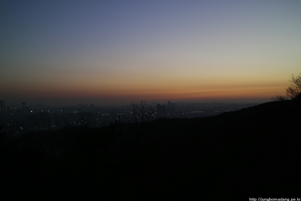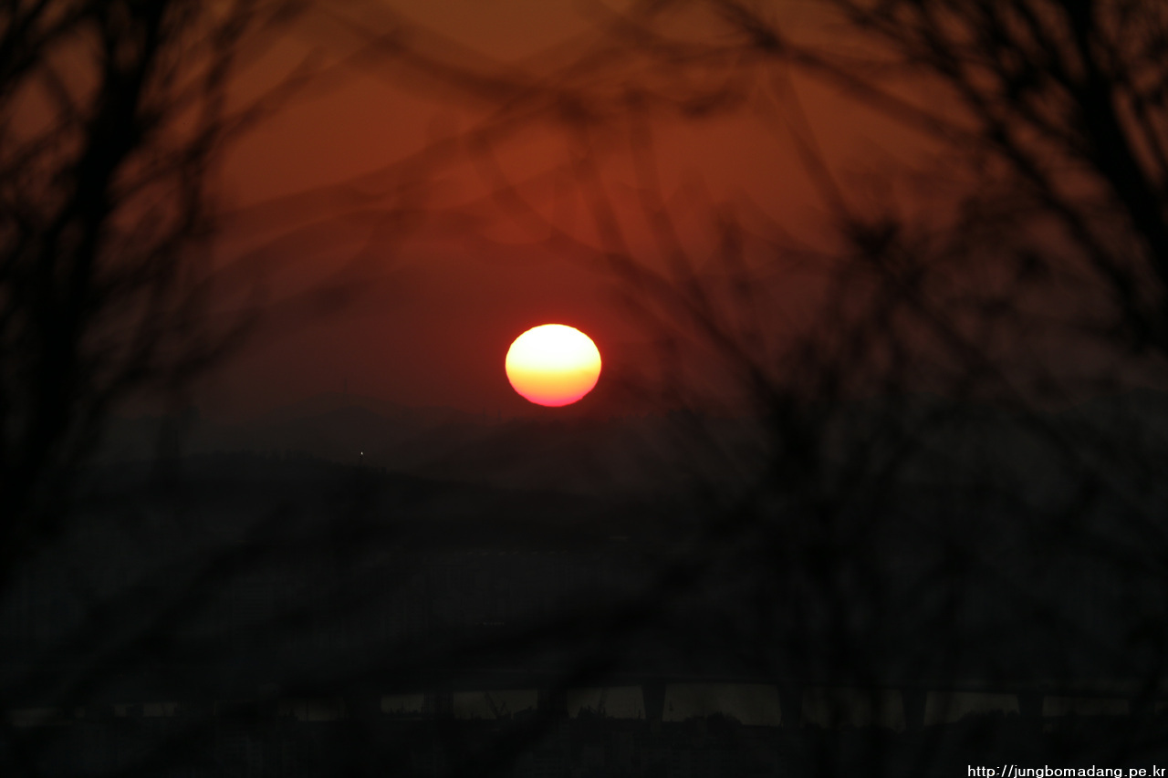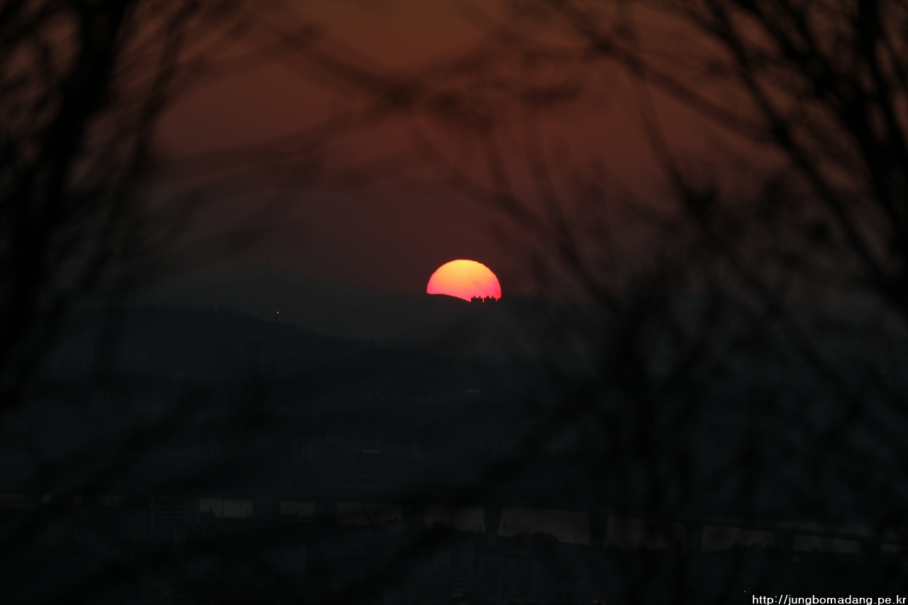 가리워진 나뭇가지 틈 사이로 바라본 일몰을 보면서 남산에서 봤다면 좀 더 깨끗 했을텐 데 하는 아쉬움이. 하지만, 안산 자락길을 와본 건 잘한 일