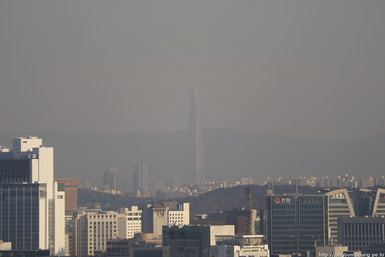 여기서 보니 알겠네요. 부연 미세먼지... 하늘은 맑은데 먼지가 가라앉아 도심을 감싸고 있네요.