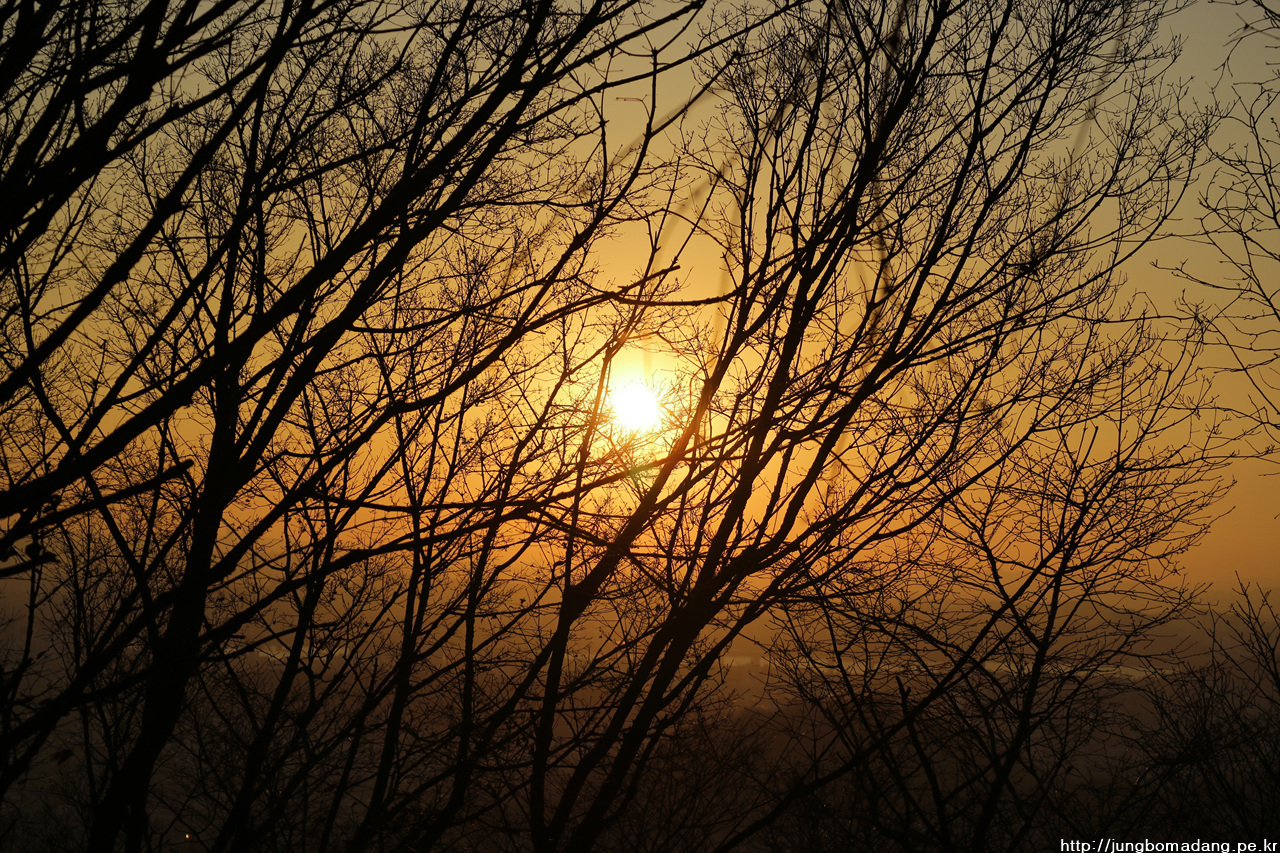 가리워진 나뭇가지 틈 사이로 바라본 일몰을 보면서 남산에서 봤다면 좀 더 깨끗 했을텐 데 하는 아쉬움이. 하지만, 안산 자락길을 와본 건 잘한 일