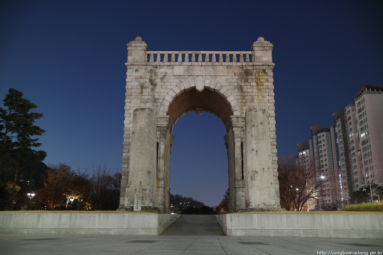 독립문 - 야경. 조명이 없어 차분한... 역사적 아픔이 있는 이 곳을 화려하게 치장하지 않는 것은 잘하는 일.