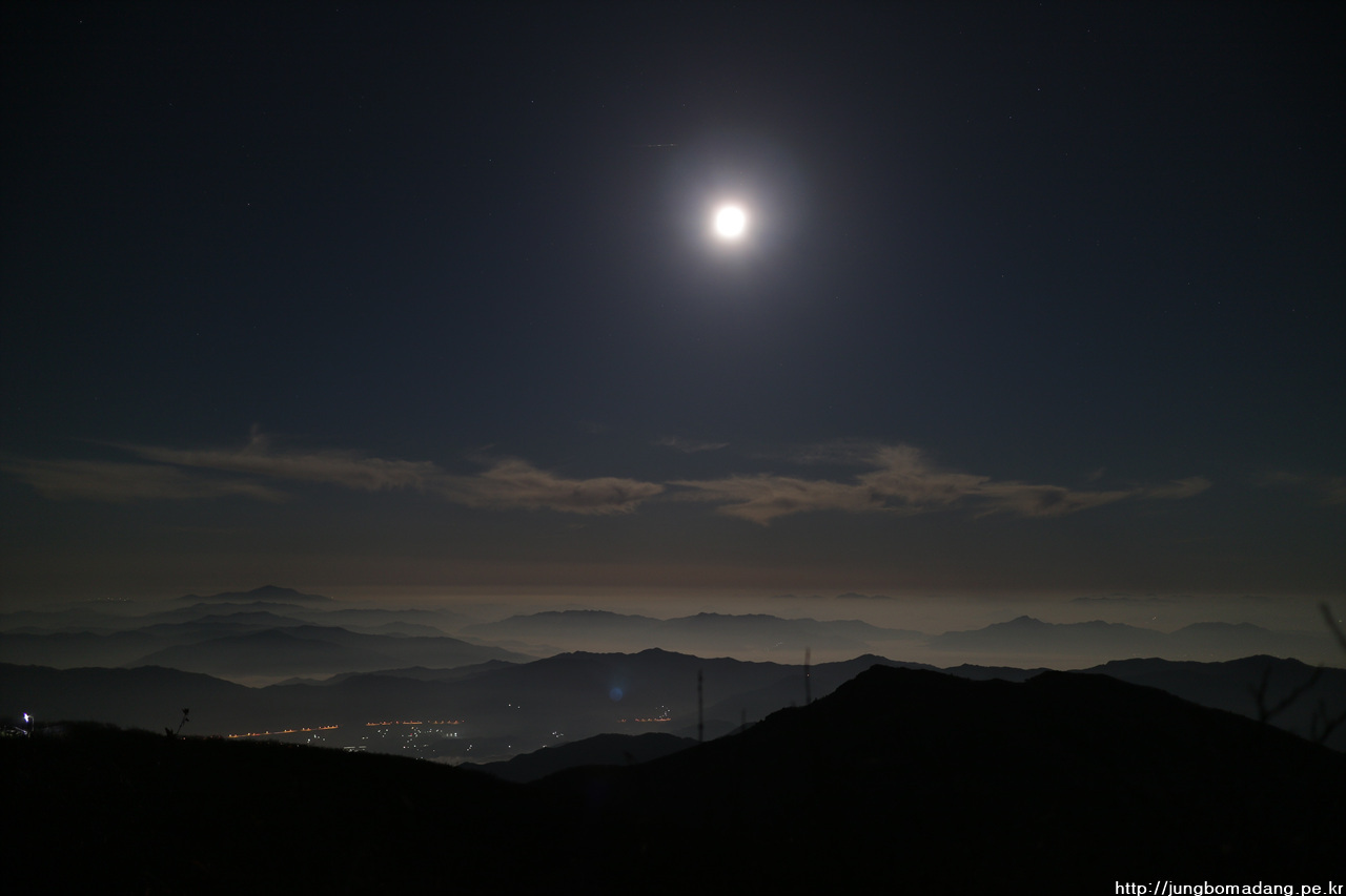 반대편으로 달님은 운무와 함께 장관을 연출 중이었습니다. 일타 이피.