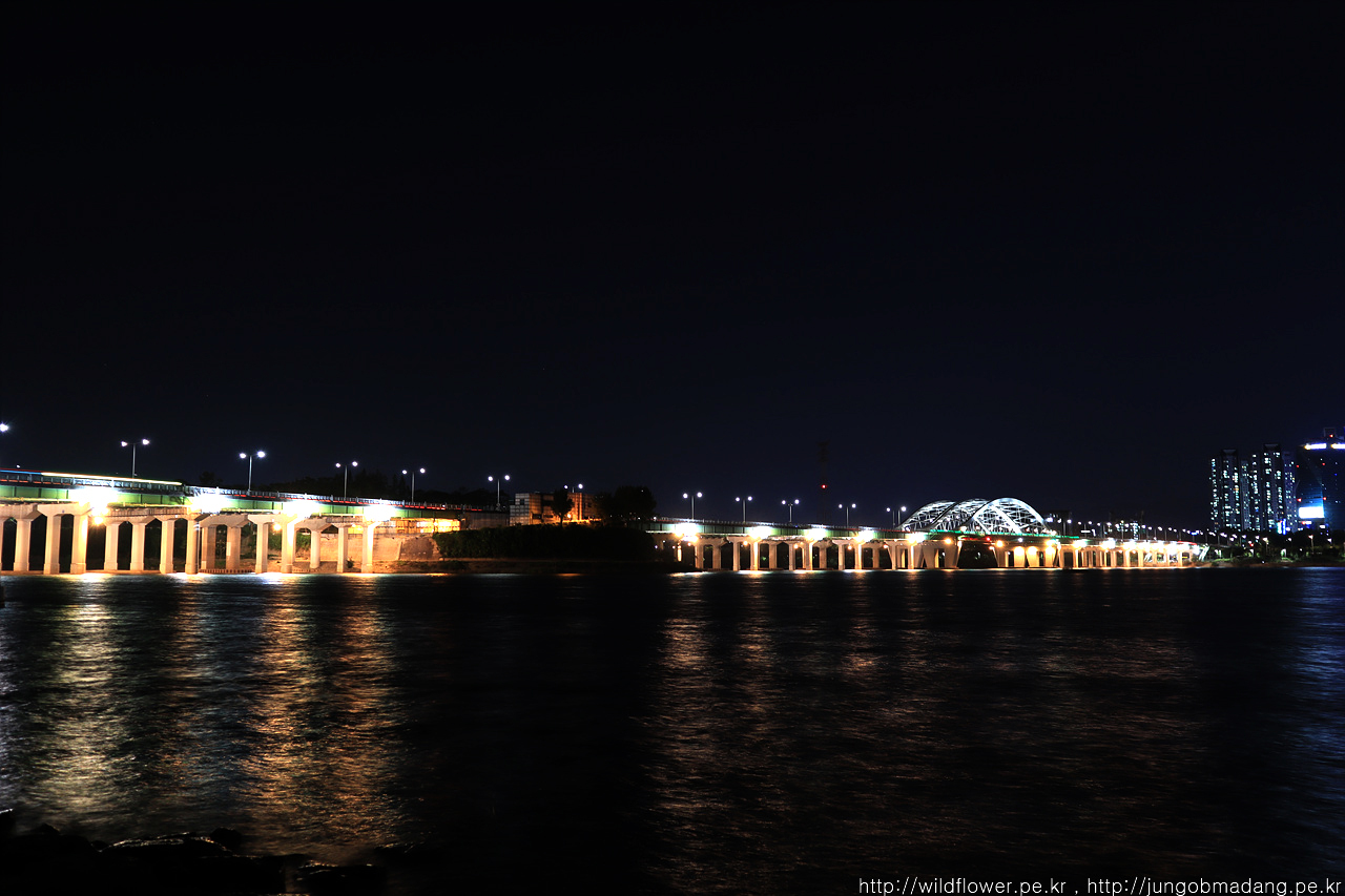 16. 노량대교(올림픽대교의 한강대교~동작대교 구간) - 21시 27분, 팔당대교 출발 기준 누적 거리 34.57km,