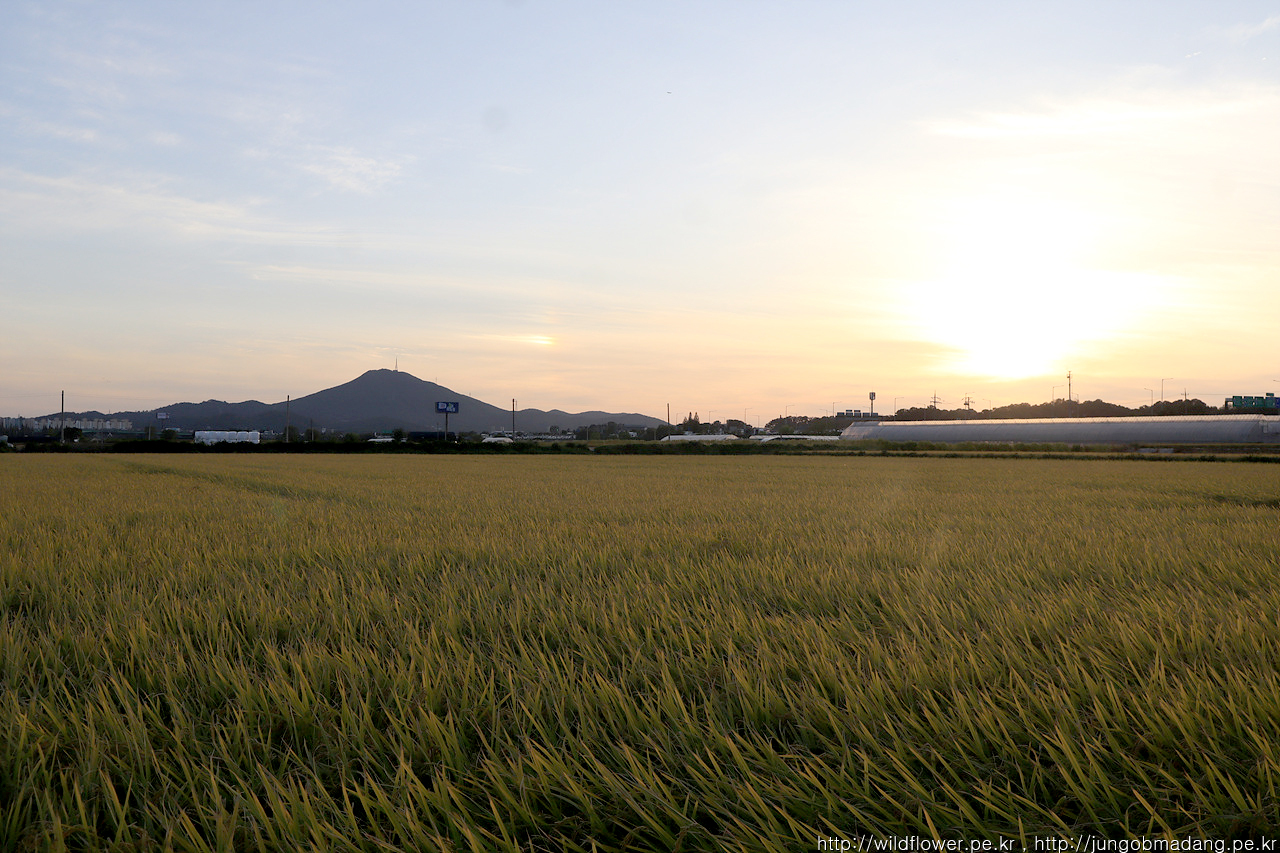 좀 더 달리다 보니 황금 들판과 일몰이 버무려집니다. 일몰이 목적이 아니므로 이제부터 일산대교까지 집중해서 달립니다.