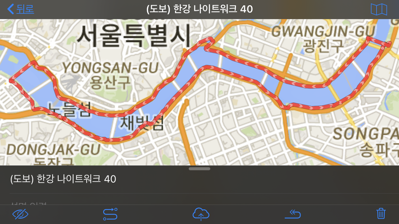 그동안 개인적으로 적잖은 시간 박배낭 메고 하루 40~50킬로씩 걸으면서 돌아 다녔는 데, 단단한 콘크리트길로 구성된 한강 나이트 워크는 뭐랄까... 개인적으로 육구 종주와 화대 종주의 사이의 난이도의 트래킹이었습니다.