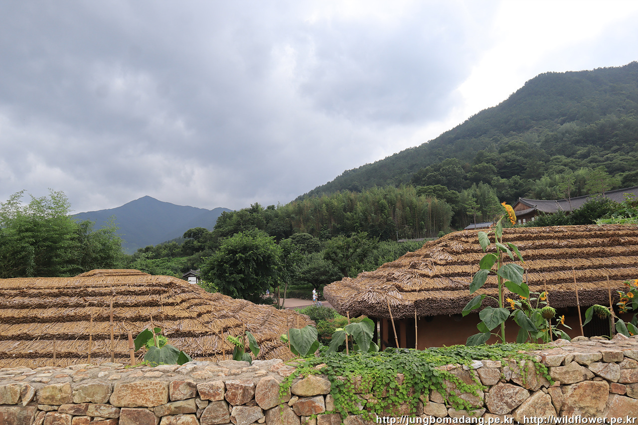 원추리 뒤로 지리산이 터 잡고 있고, 오늘 날씨도 흐리네요. 금방이라도 비가 올 듯 합니다.