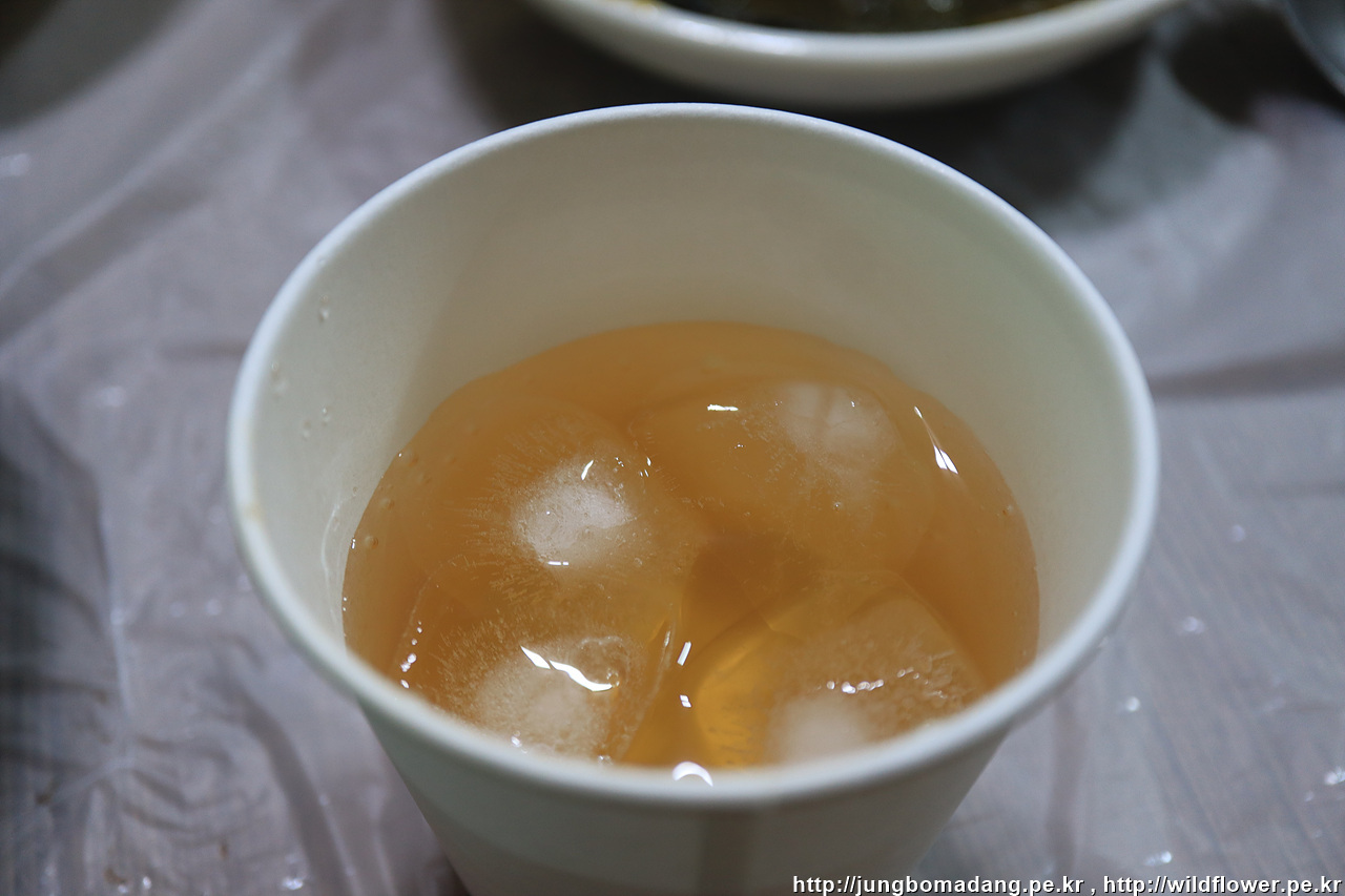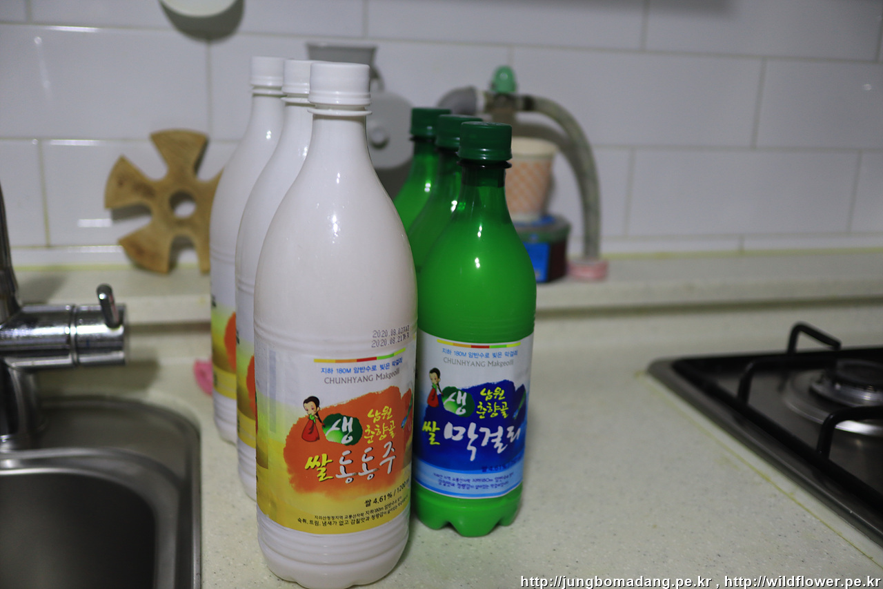 음식을 주문하고, 주인에게 양해를 구하고 양조장에서 샘플로 먹고 남은 동동주 한병을 나눠 마십니다.
