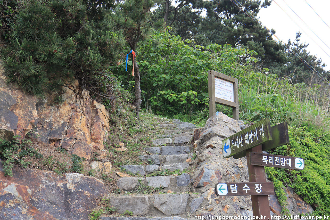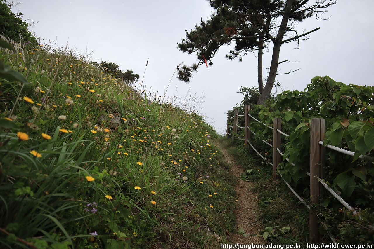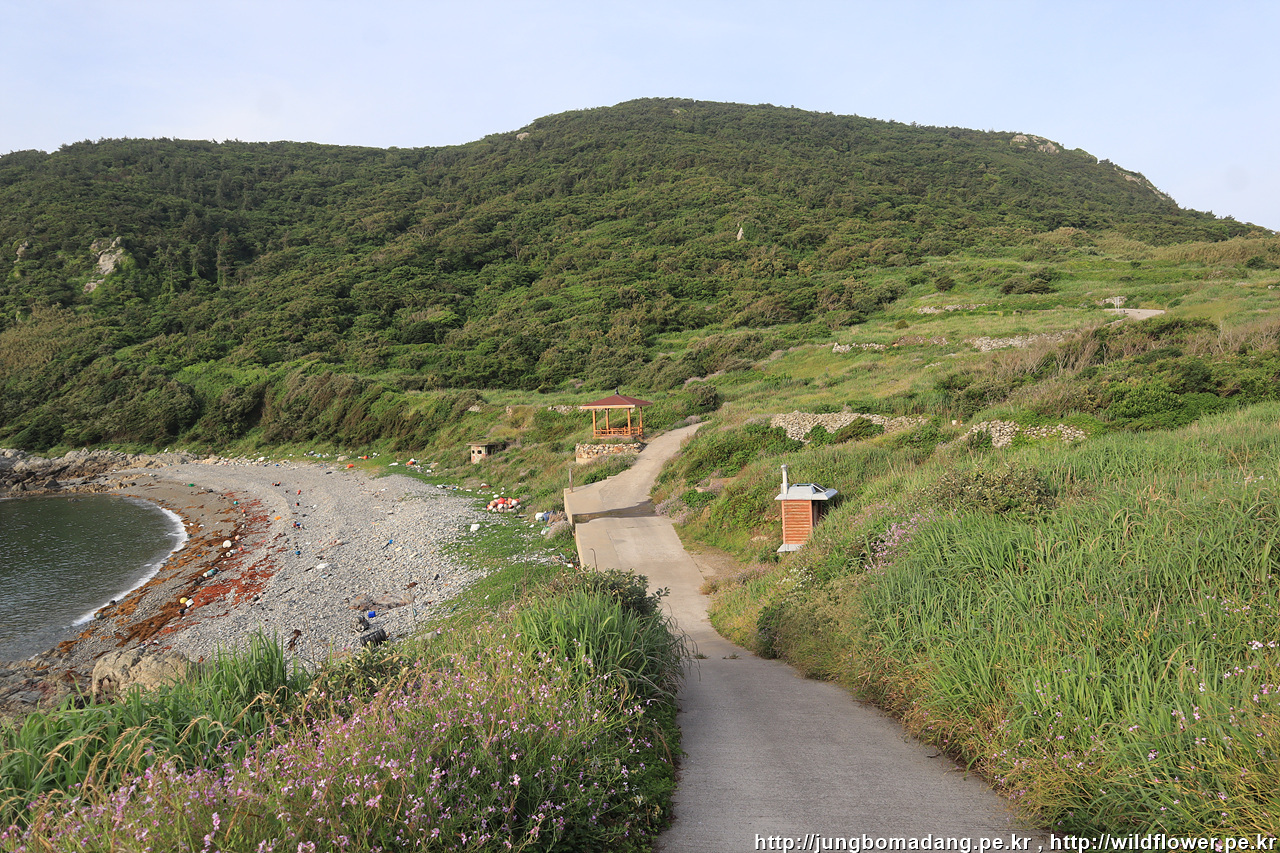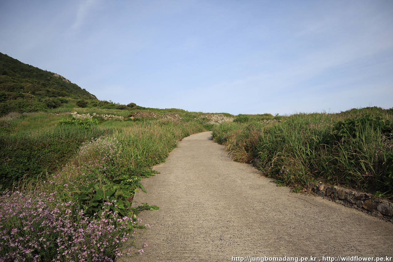 추자초등학교 옆 길을 따리 최영장군 사당으로 진행합니다. 노란건 가자니아, 분홍색은 분홍낮달맞이.