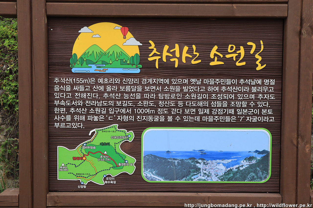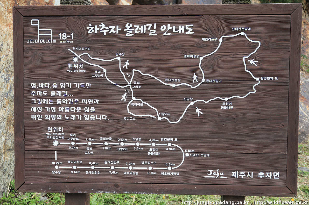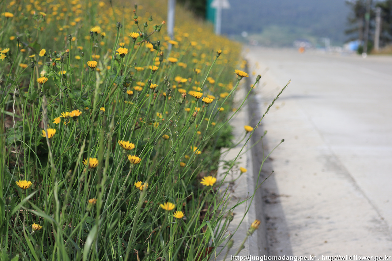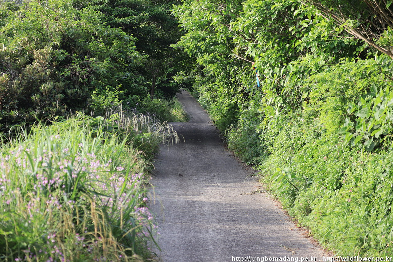 추자초등학교 옆 길을 따리 최영장군 사당으로 진행합니다. 노란건 가자니아, 분홍색은 분홍낮달맞이.