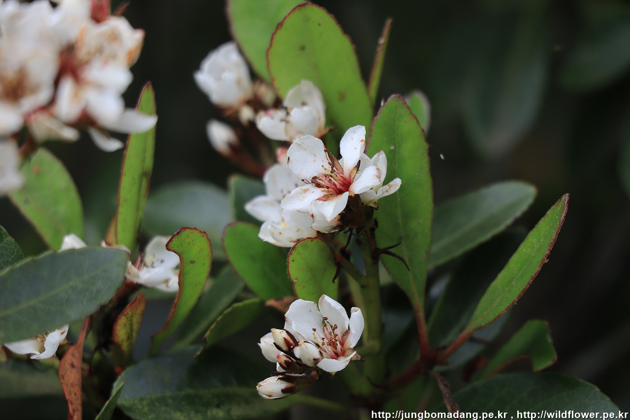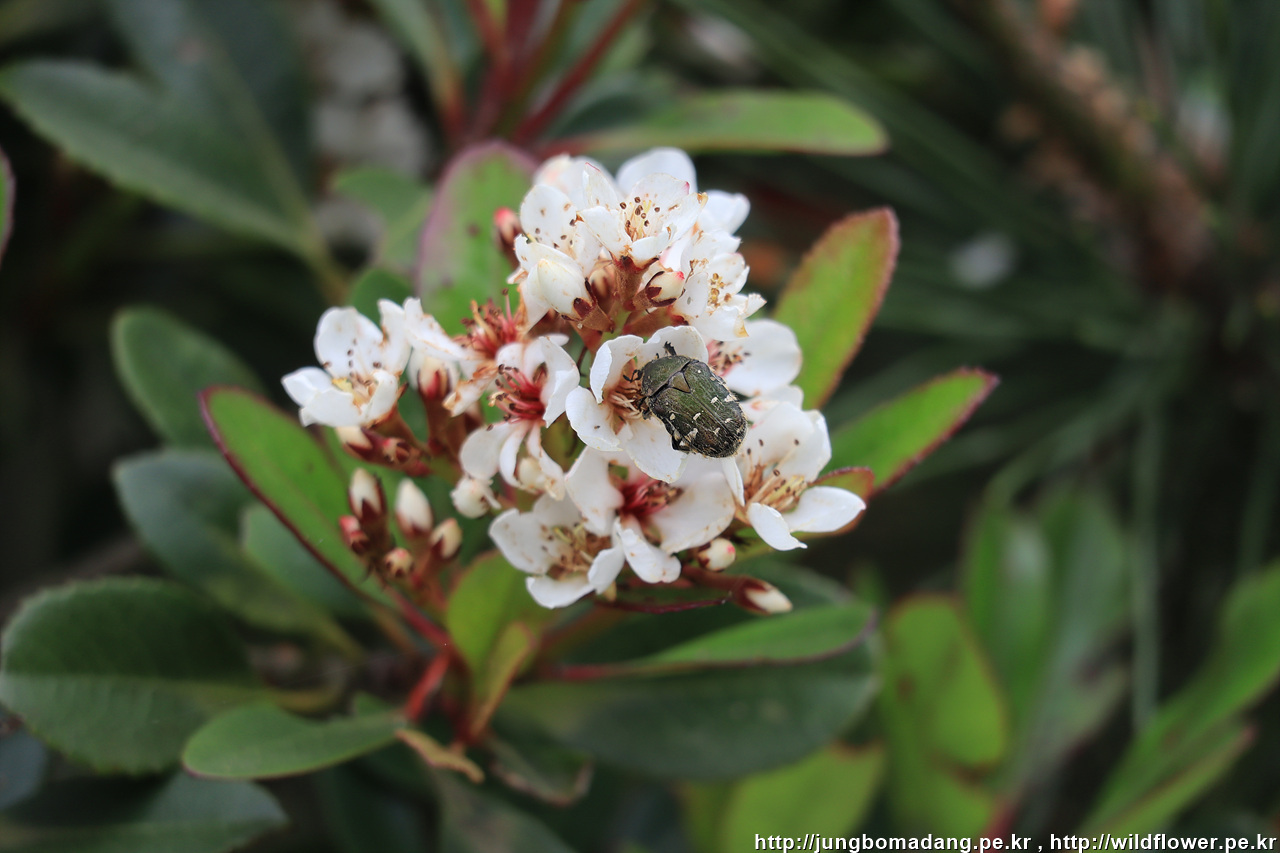 다정큼나무에 풀색꽃무지가 열심히 작업 중이네요.