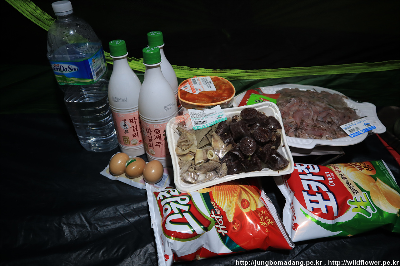 짐은 최소화했지만, 야영을 병행해야하기에 기본 무게가 12Kg 나오네요, 배낭은 40+5 서미트 배낭. 최저기온은 15도 기준으로 침낭 매트를 꾸렸습니다. 텐트는 어차피 바람막이니 아무거나.