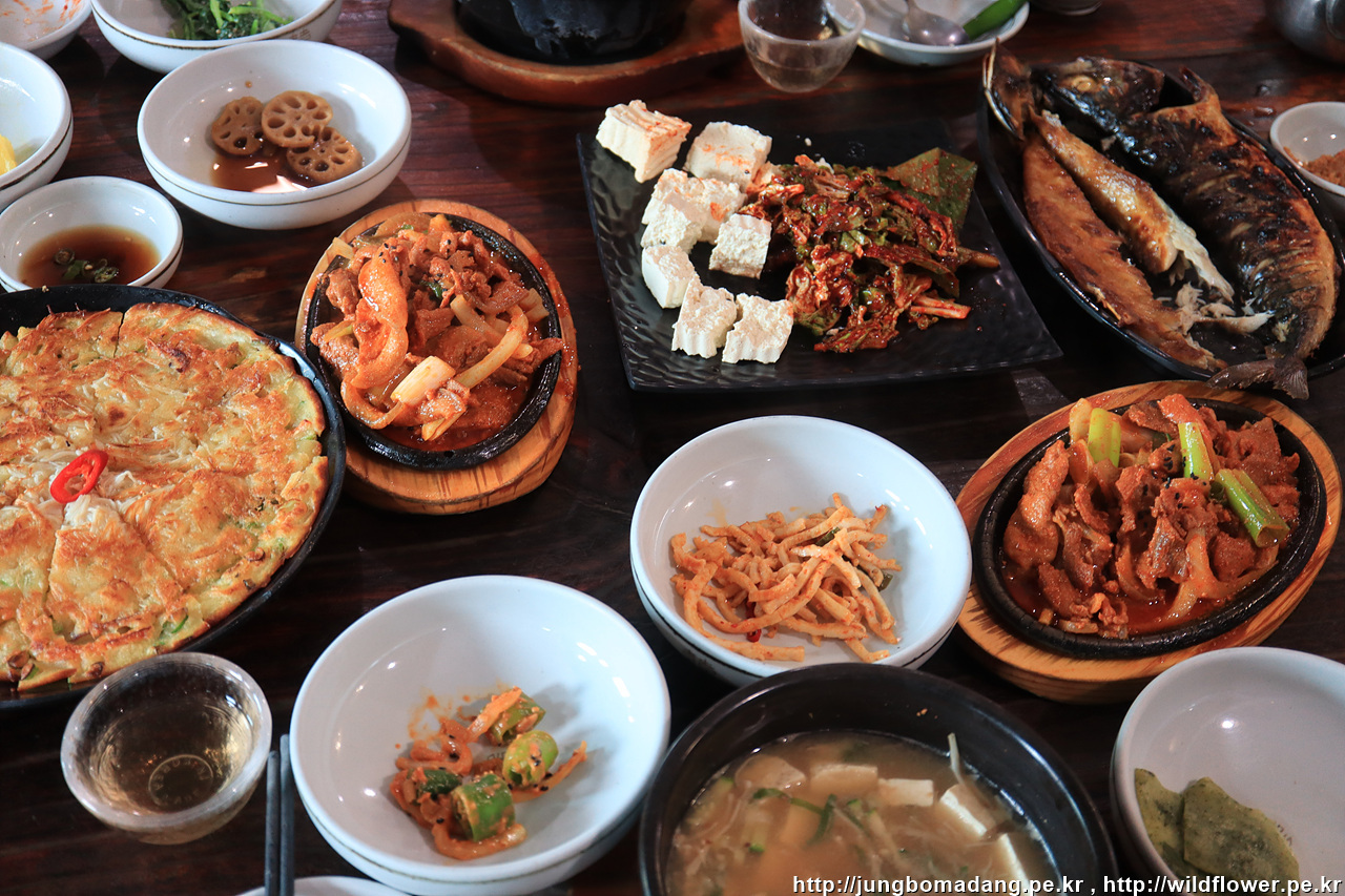 낭뜰정식 3인에 해물버섯전으로 한상 거하게 차리고 제주막걸리도 한잔