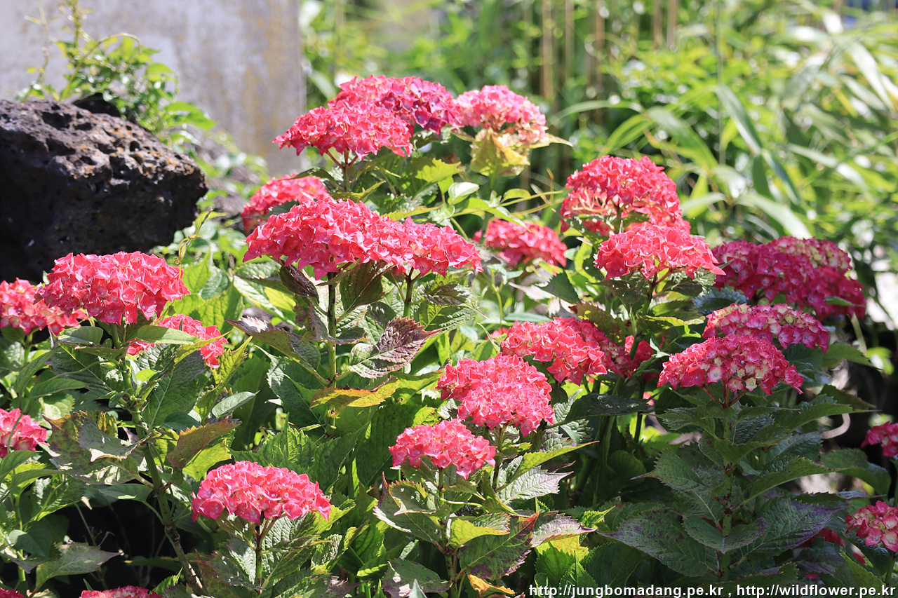수국 - 유난히도 색이 붉은 모습입니다.