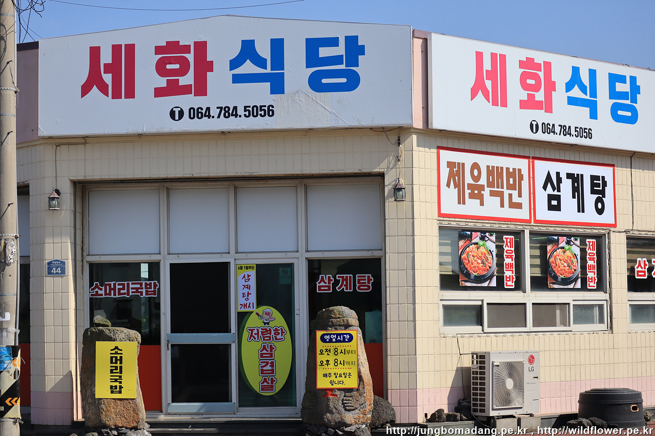 예전에 세화칼국수였는 데 간판이 세화식당으로 바뀌었네요. 간판이 칼국수인데 다들 제육백반 시켜서 고개를 갸웃거렸는 데 이제야 잘 맞는 거 같아요.