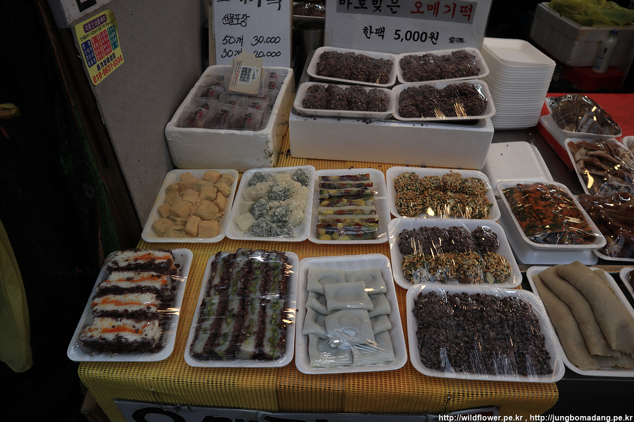 오메기떡 한팩에 5000원, 견과류와 팥고물 4개씩 섞인 거 한팩 구매