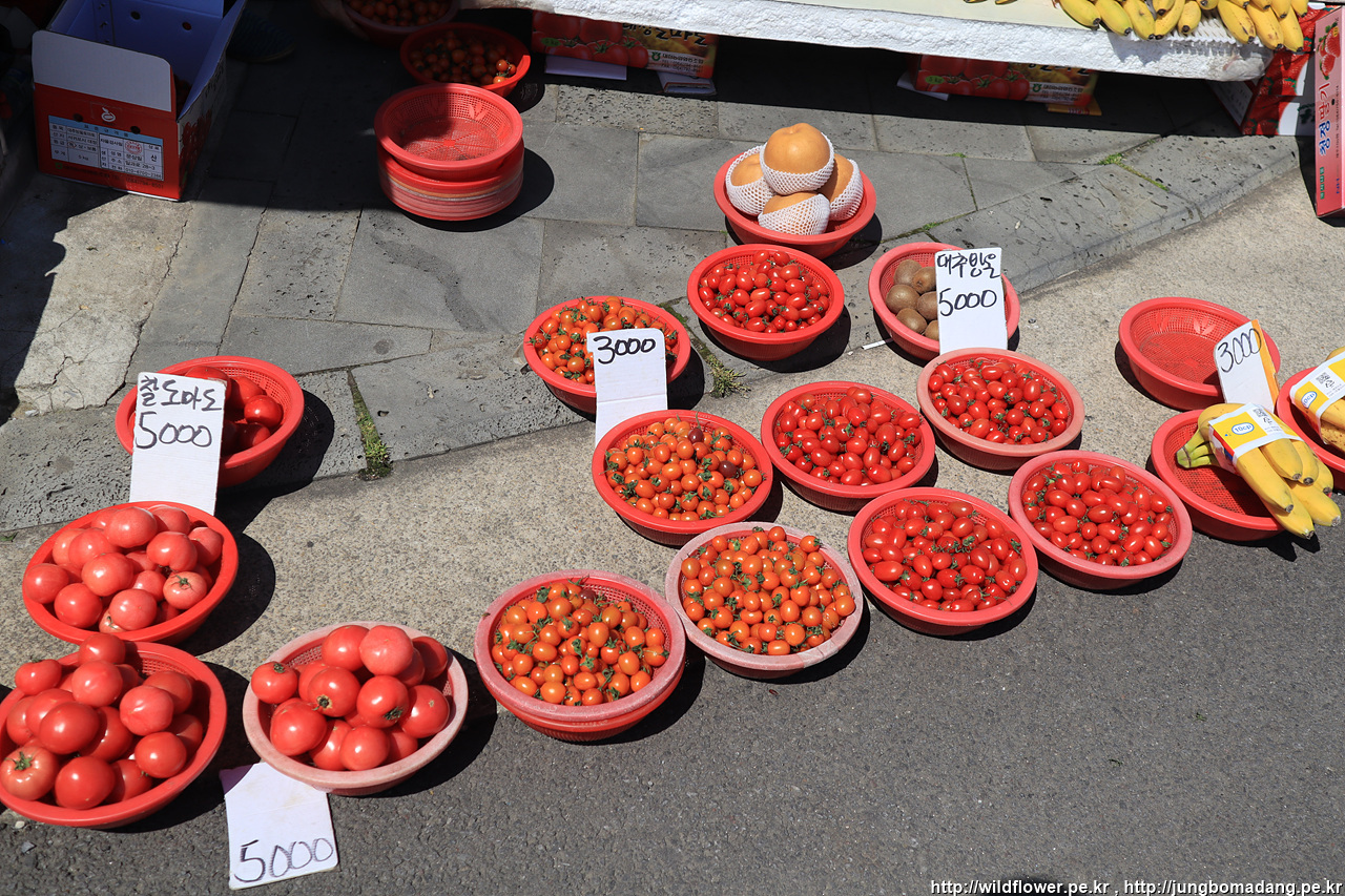 와! 대정읍내를 지나고 있는 데, 오일장을 열었네요? 다행히 현찰이 조금있어 방울토마토 한바구니를 구매합니다. 양이 으마 으마 하네요 ㅠ