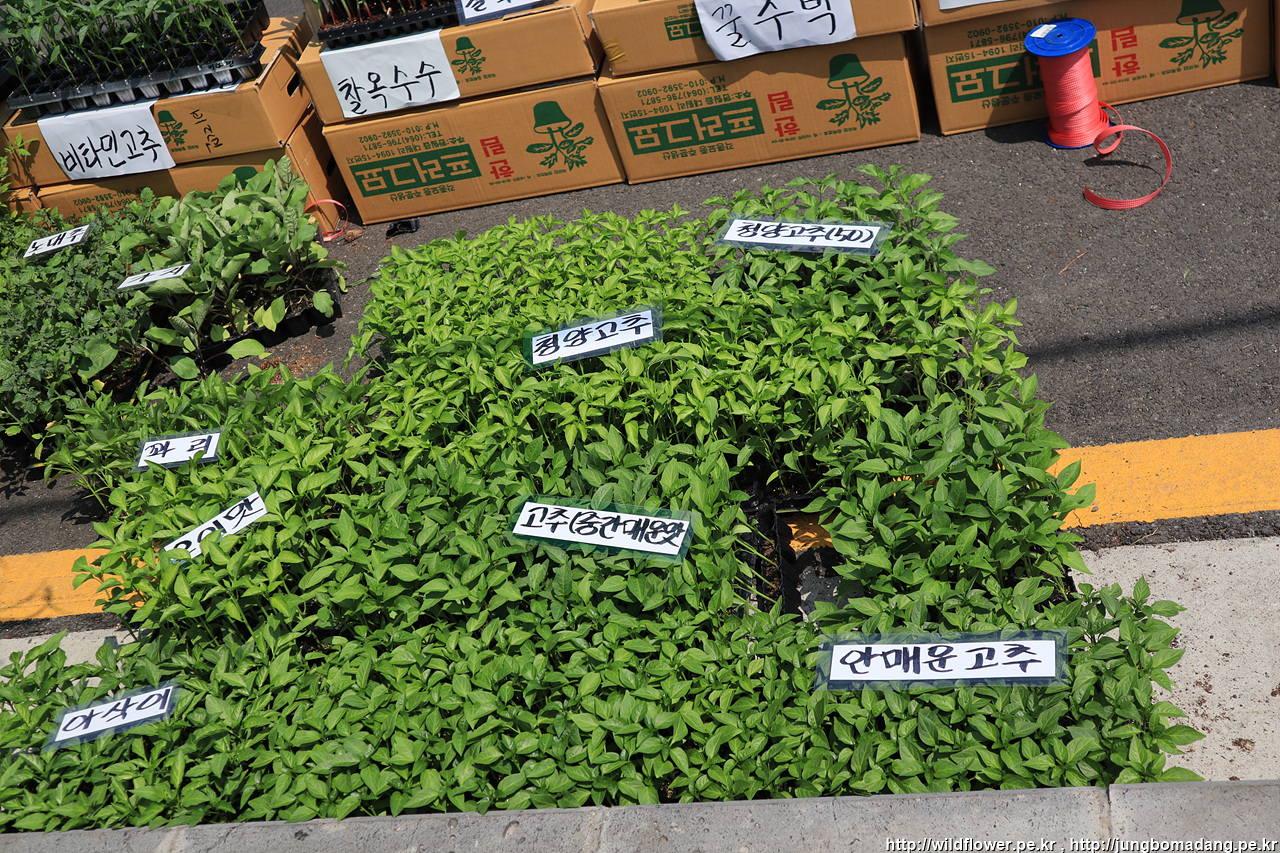 그렇게 관람및 폭풍 구매를 마치고 숙소로 걸어가는 길... 잎만 봐선 뭐가 청양인지 뭐가 어떤 고추인지 구별이 쉽지 않네요.