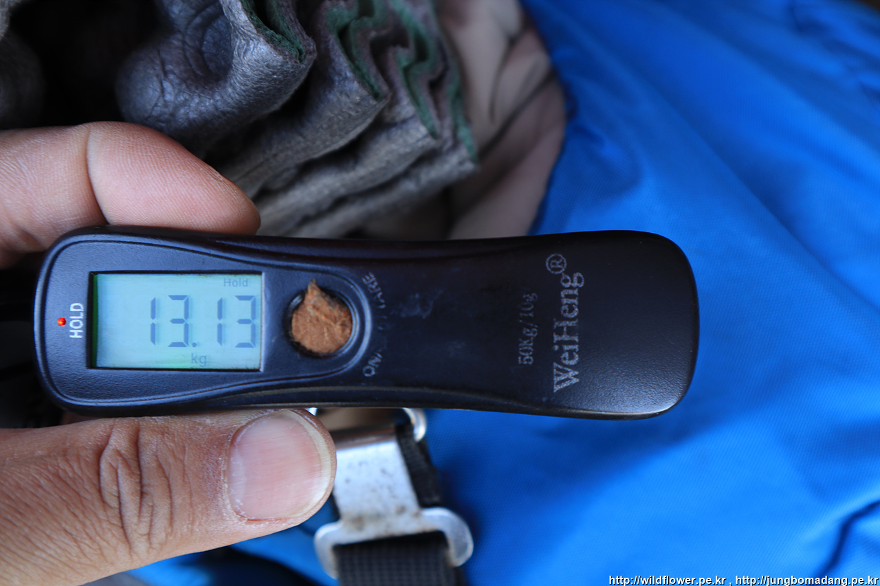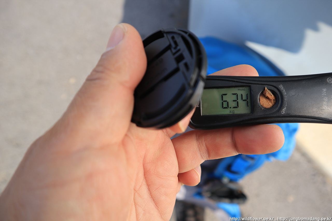 정리를 마치고 나니 배낭 무게가 6.34Kg 와우! 침낭은 남겨줍니다. 이불이 없으므로...