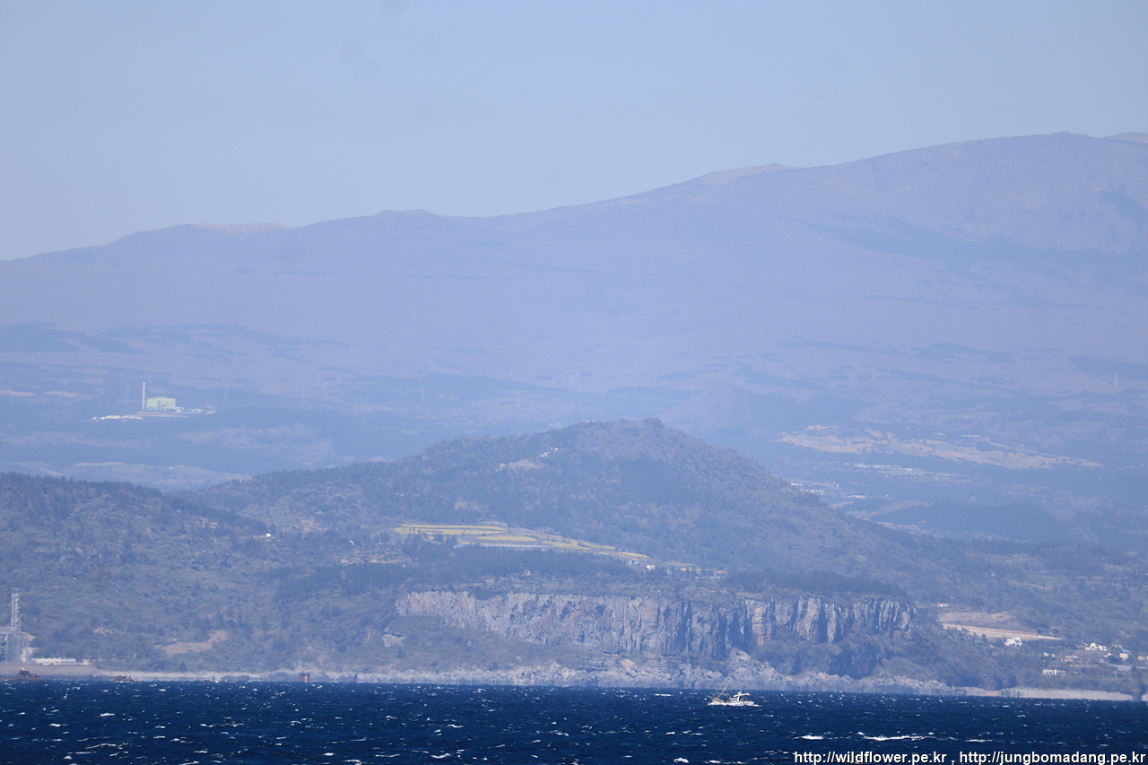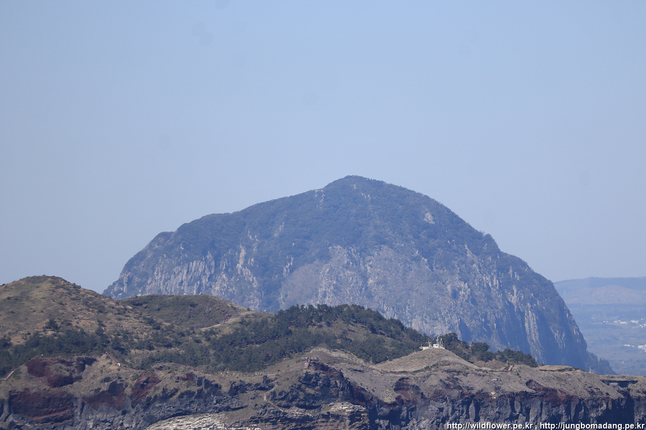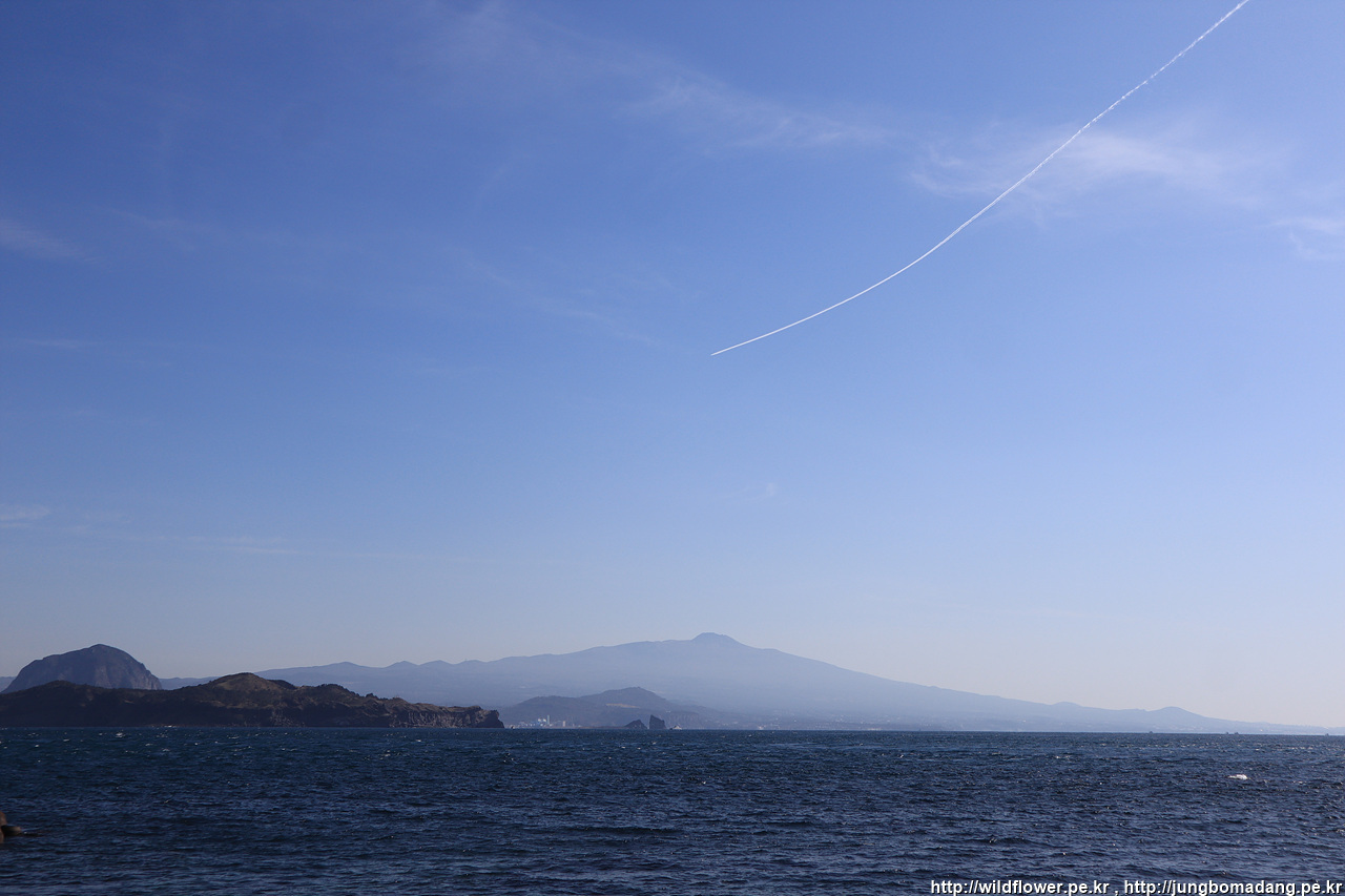 뒤로 산방산과 희미하게 펼쳐지는 한라산
