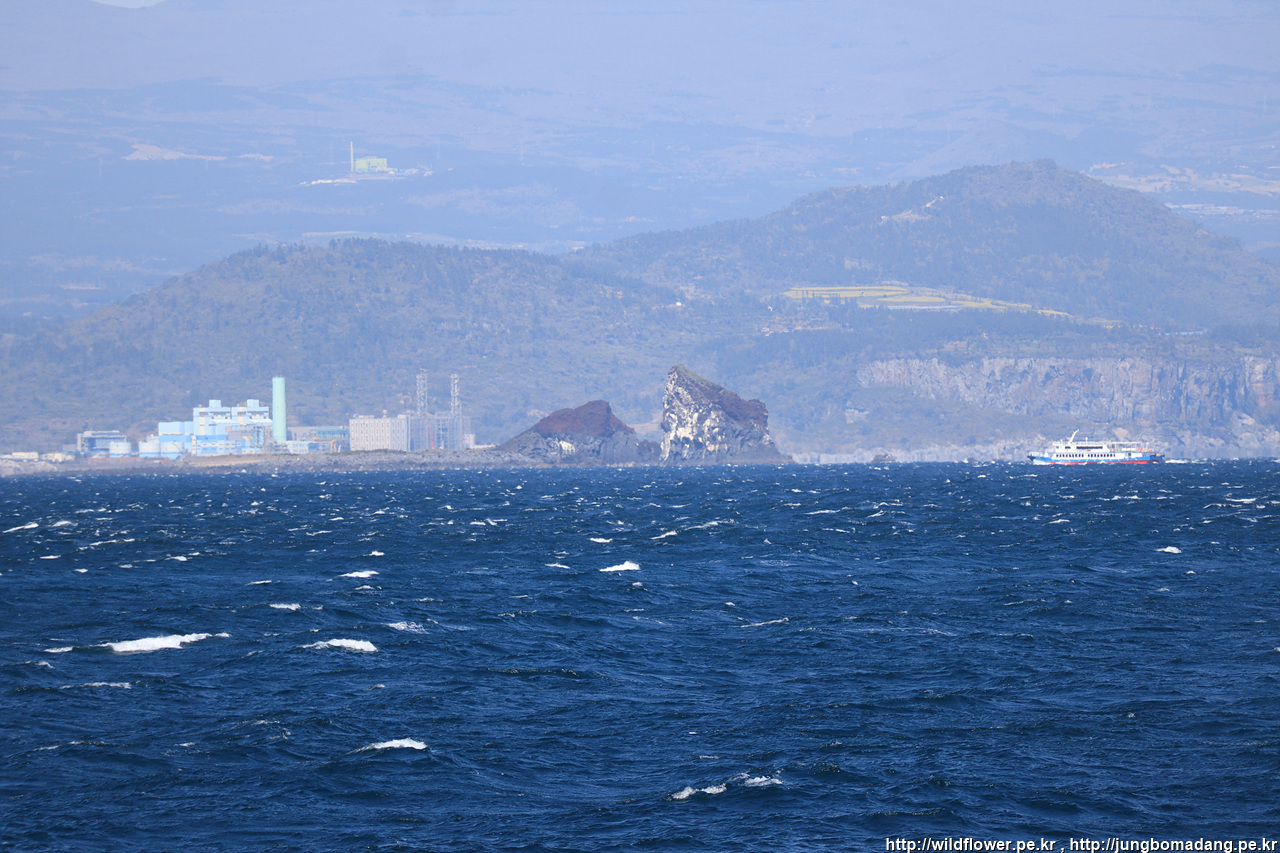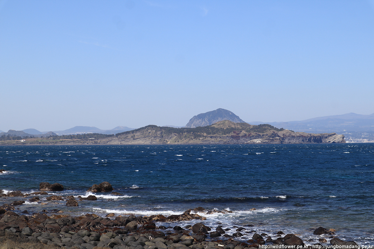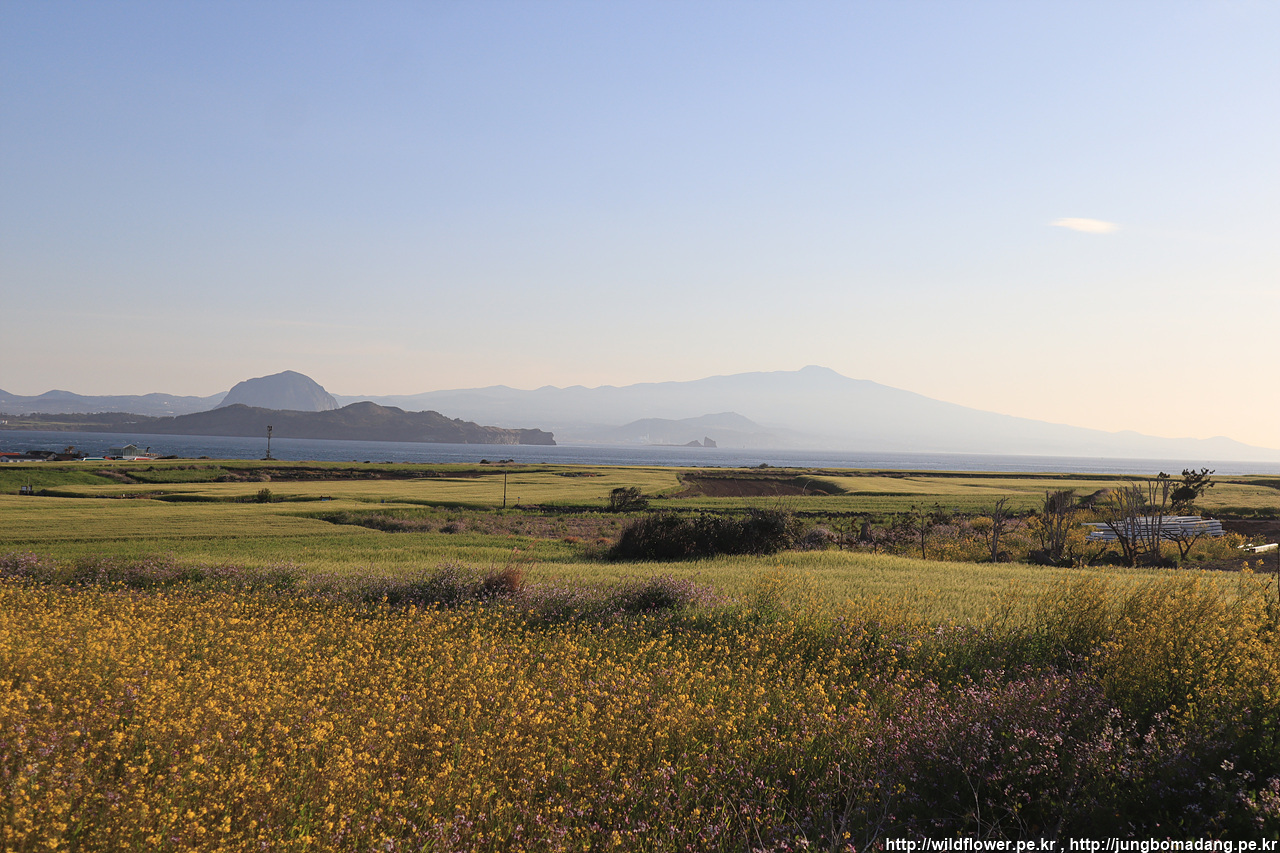 뒤로 산방산과 희미하게 펼쳐지는 한라산
