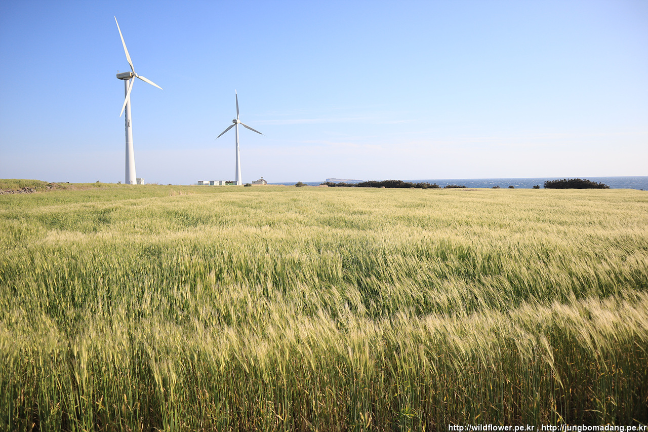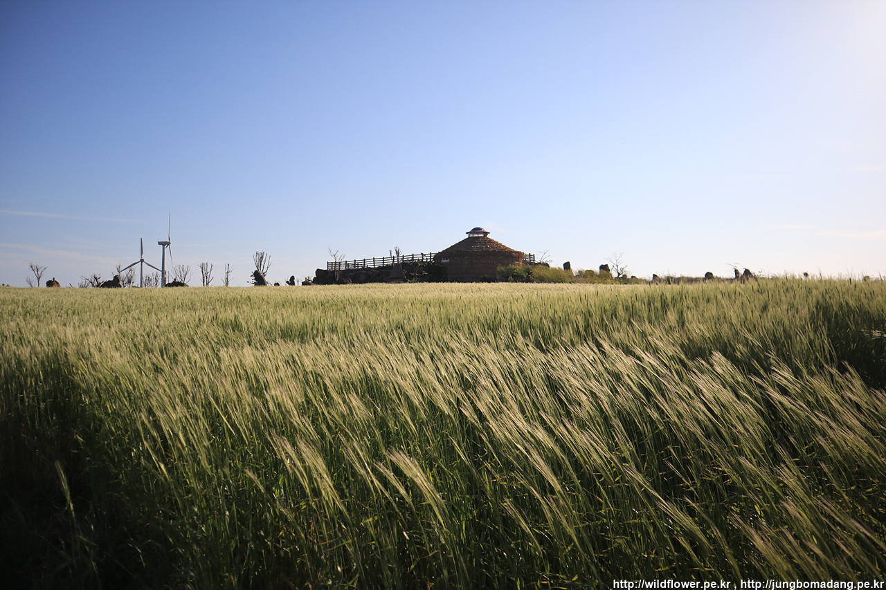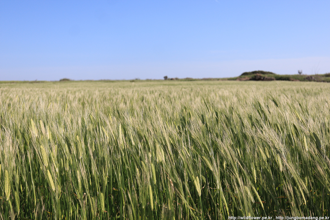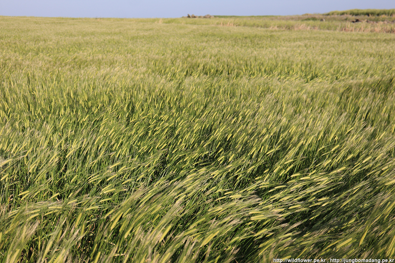 바람이 세차가 부는 통에 청보리들이 바람의 연주에 따라 춤을 춥니다.