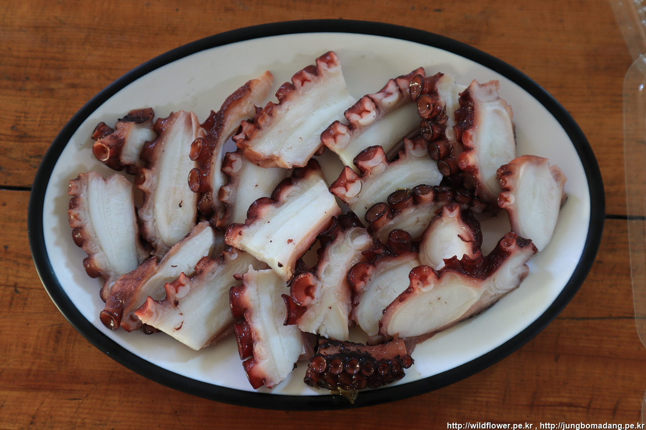 문어 만원어치 - 초장도 주시고, 톳해물파전도 잘 배낭에 밀어 넣고...