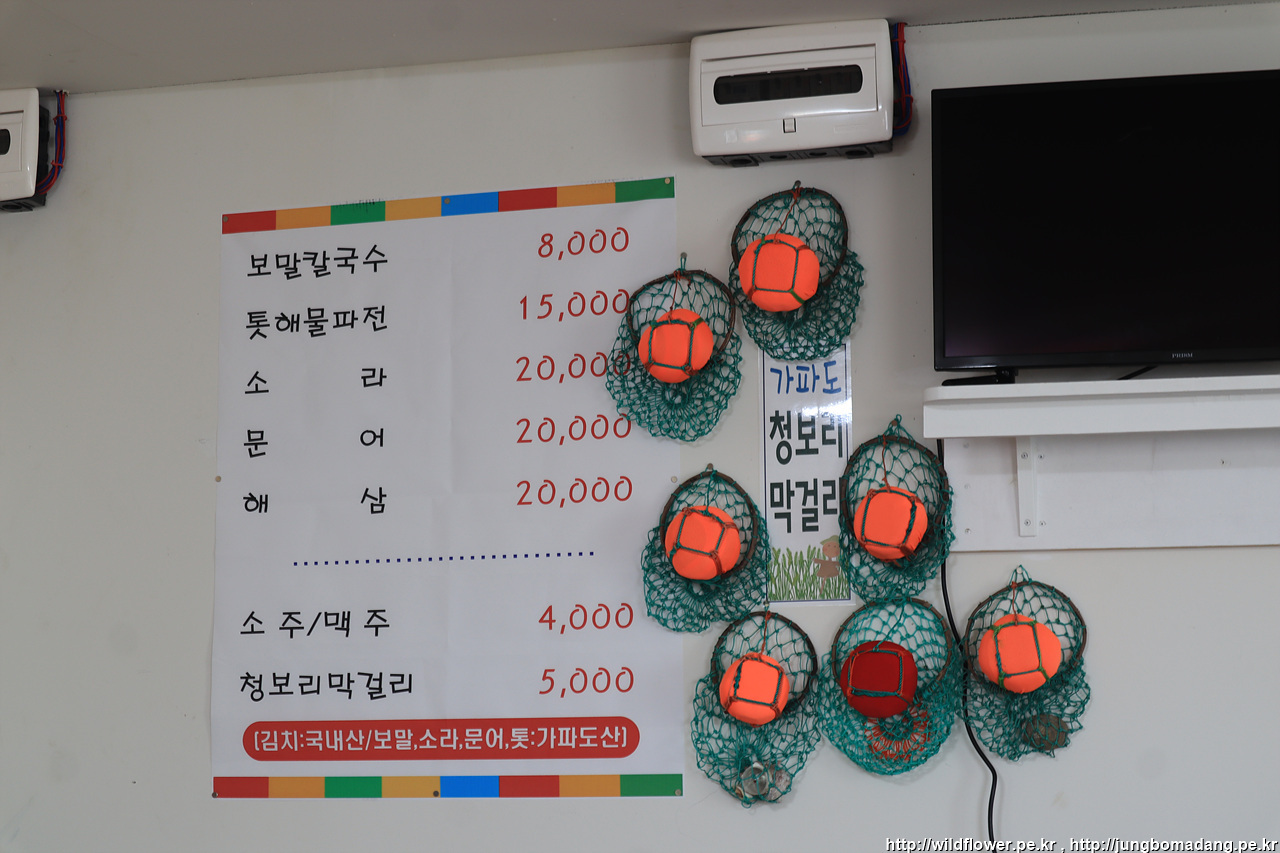 섬 중심지를 가다가 쓱~ 들어간 곳. 별장민박. 다행히 음식 준비가 아직 된다 해서 톳해물파전과 문어(숙회) 만원어치를 주문합니다. 다행히 카드도 되네요. 텐트로 일박 한다니까 어디서 자면 바람을 덜 맞을 수 있는 지 친절하게 알려 주시네요.