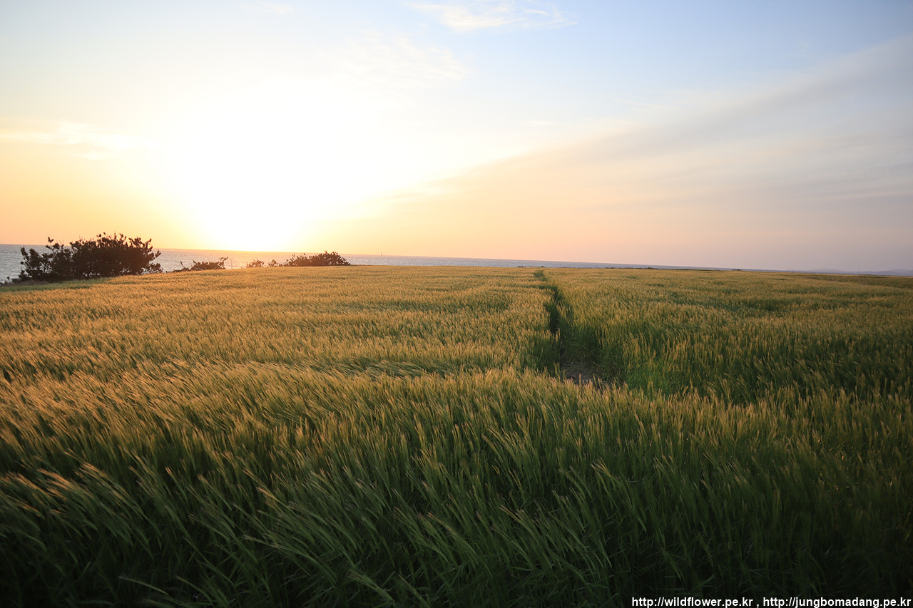 일몰과 함께 담아보려 청보리밭에 올라 왔는 데, 쉽지 않네요 ㅠ