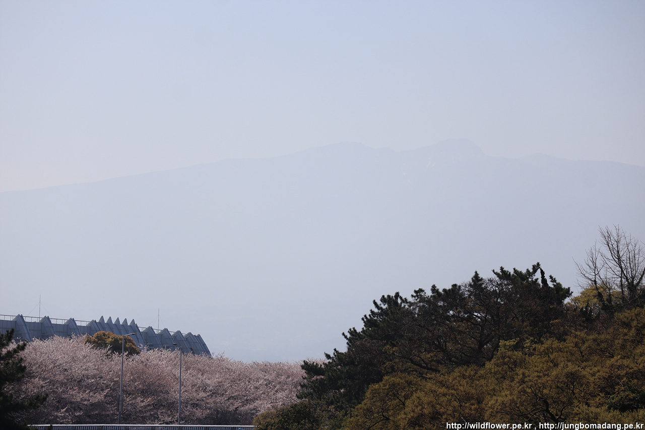 제주 첫날 보았던 한라체육관 종합경기장 일대 벚꽃입니다.