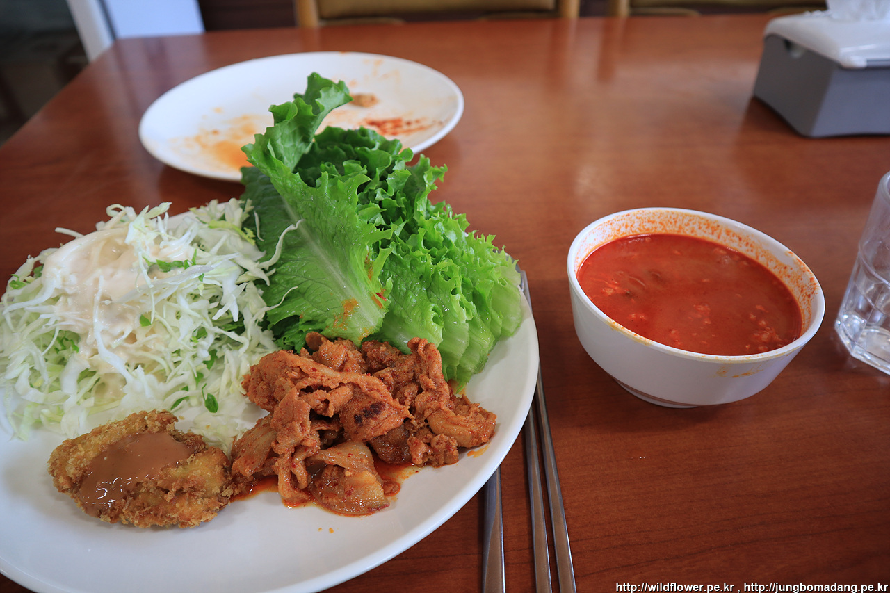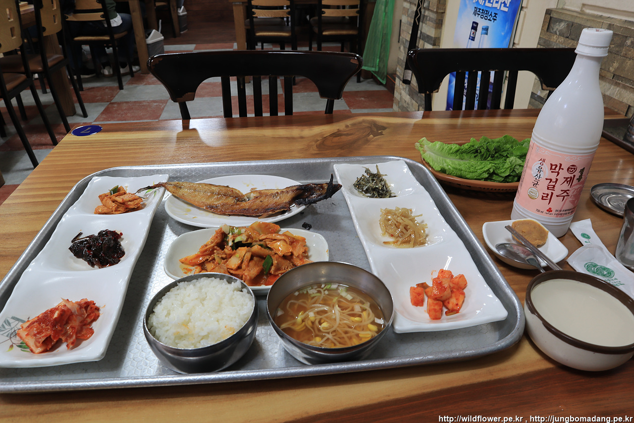 제육볶음에 고등어구이까지 주는 데 7000원. 대박이네요! 막걸리도 한병 주문. 정말 정말 맛나네요. 테이블이 반이상 차 있었는 데, 제육도 맛나고 고등어도 맛나고 반찬도 정갈하니 좋았습니다.