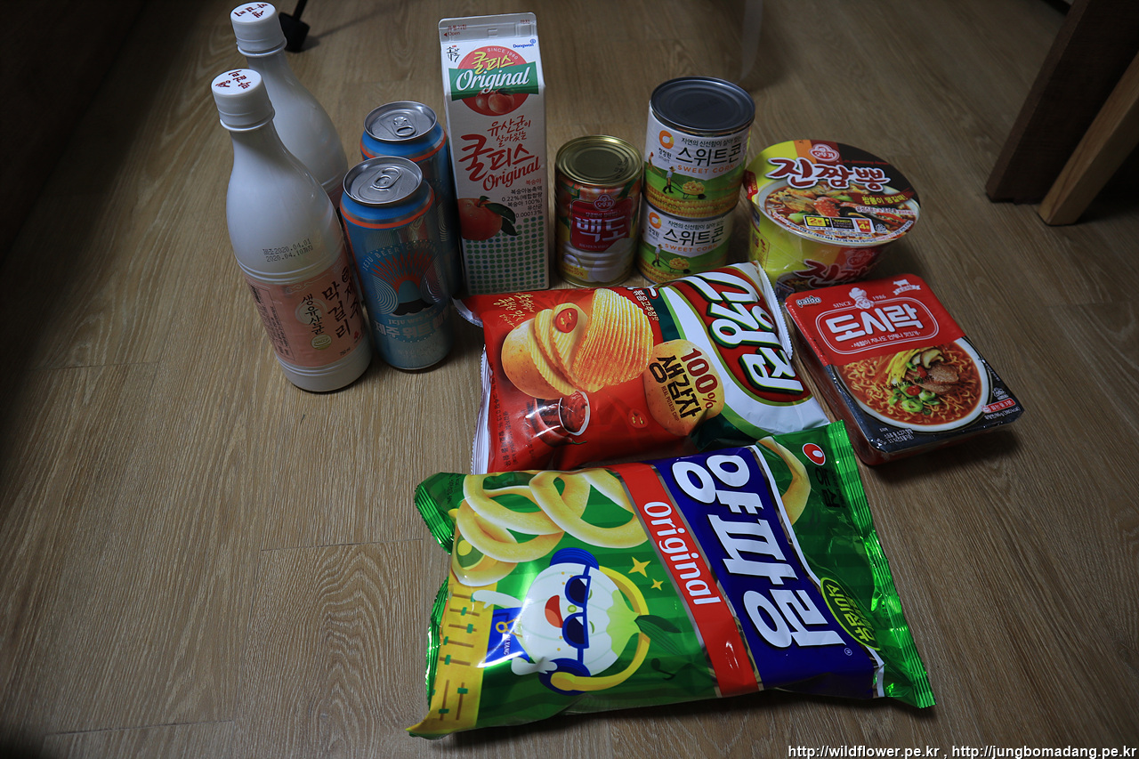 주변 슈퍼에서 먹거리를 간단히 구매합니다.