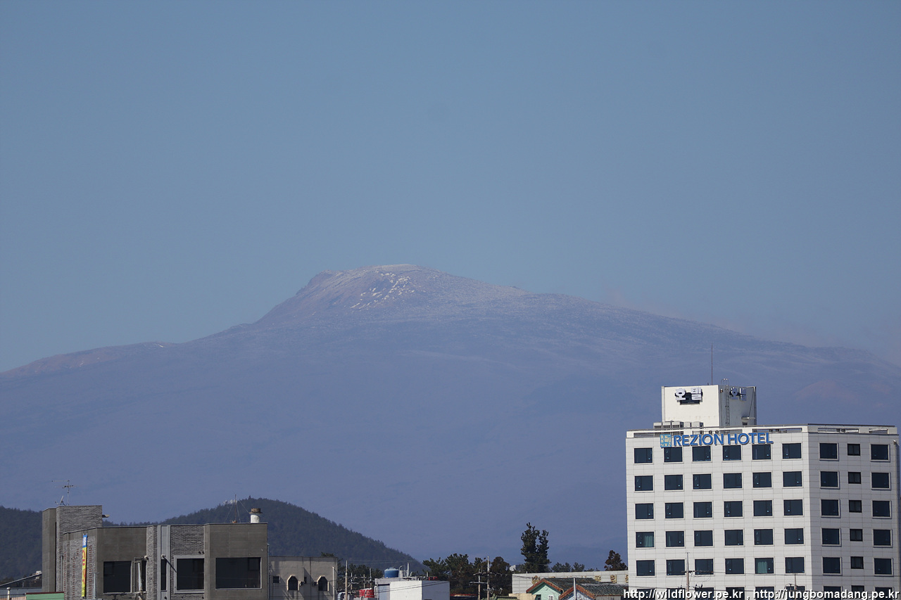 새벽에 추웠는 지 한라산 정상부는 약간 하얗습니다. 이번에는 안갈꺼지만요.