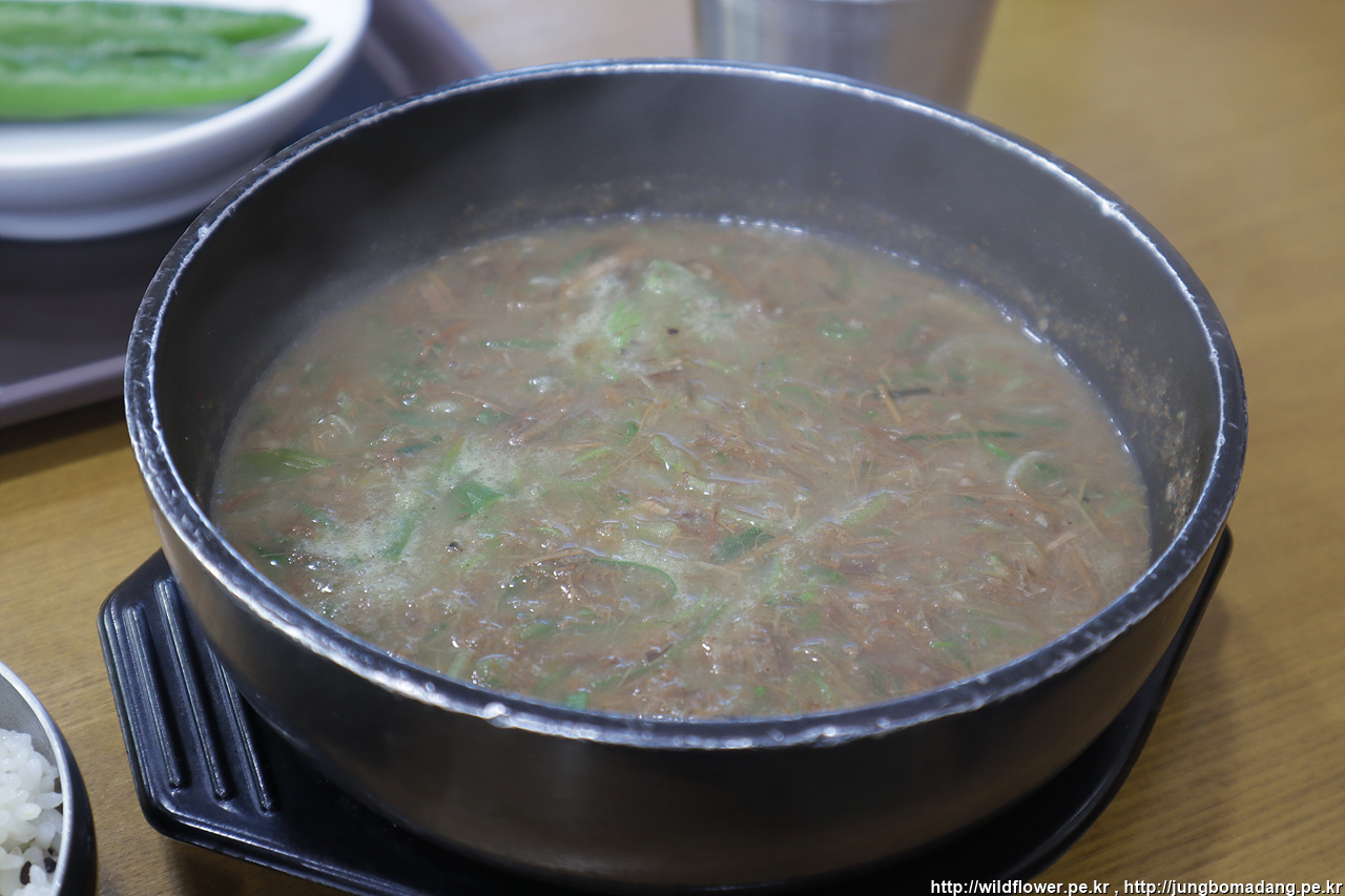 고사리육계장 - 고사리를 갈았는 지 건더기가 크지 않고 청양고추가 들어가서 살짝 칼칼합니다.