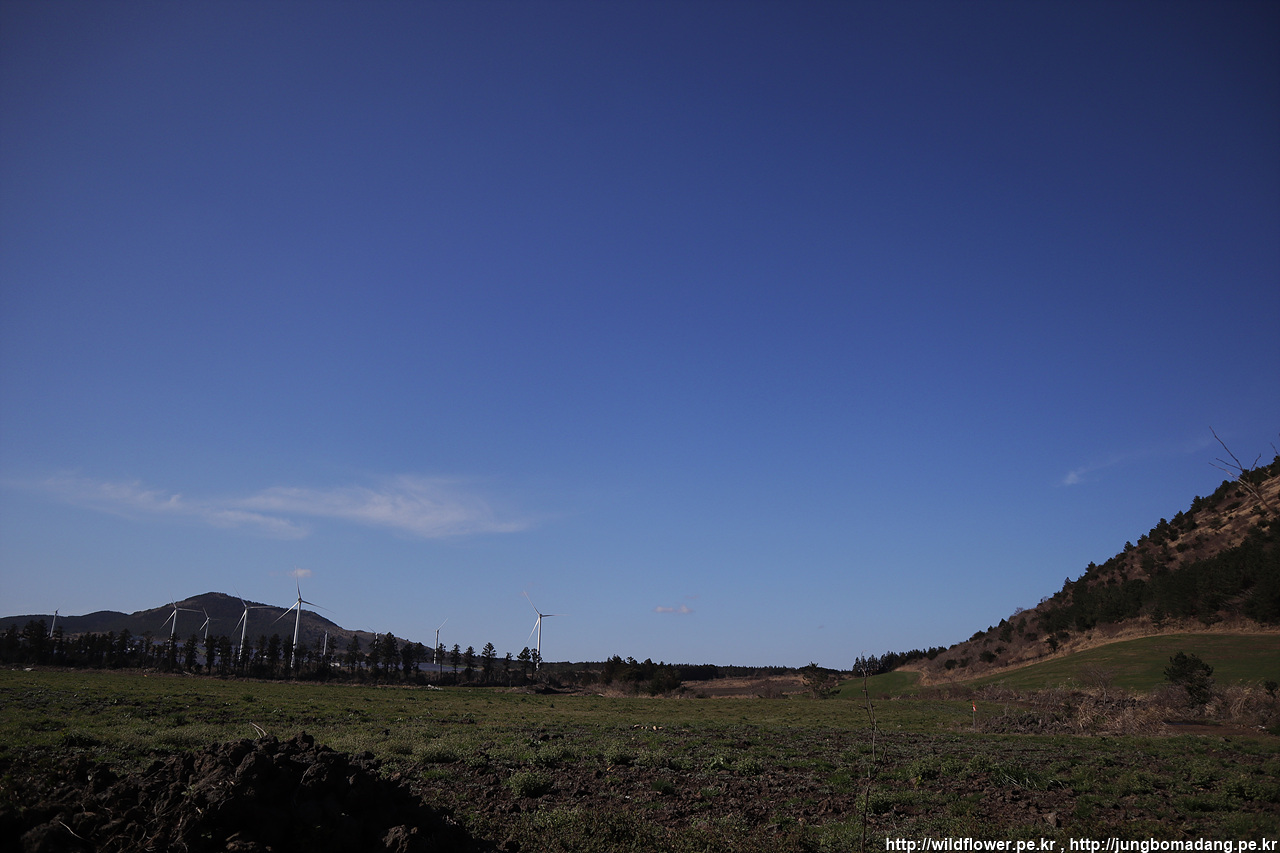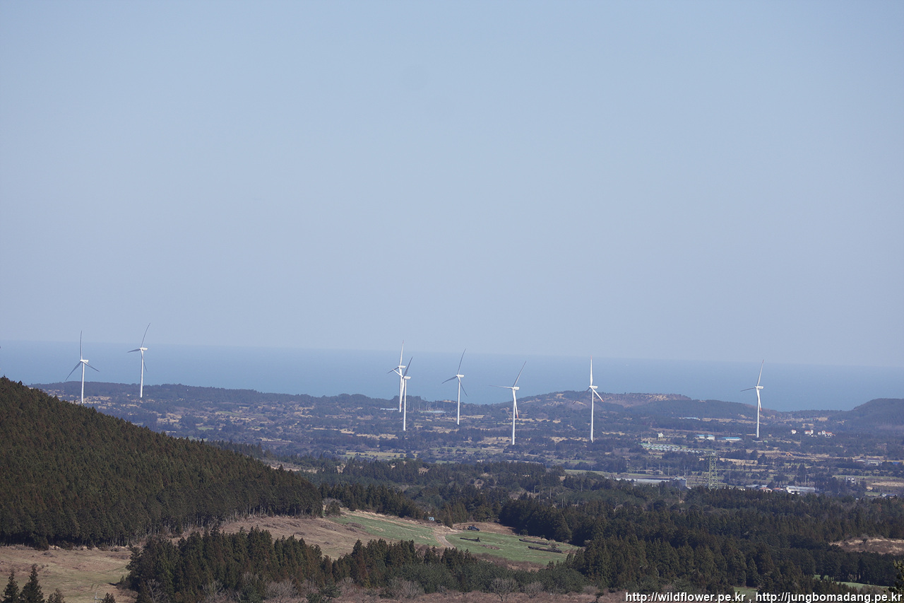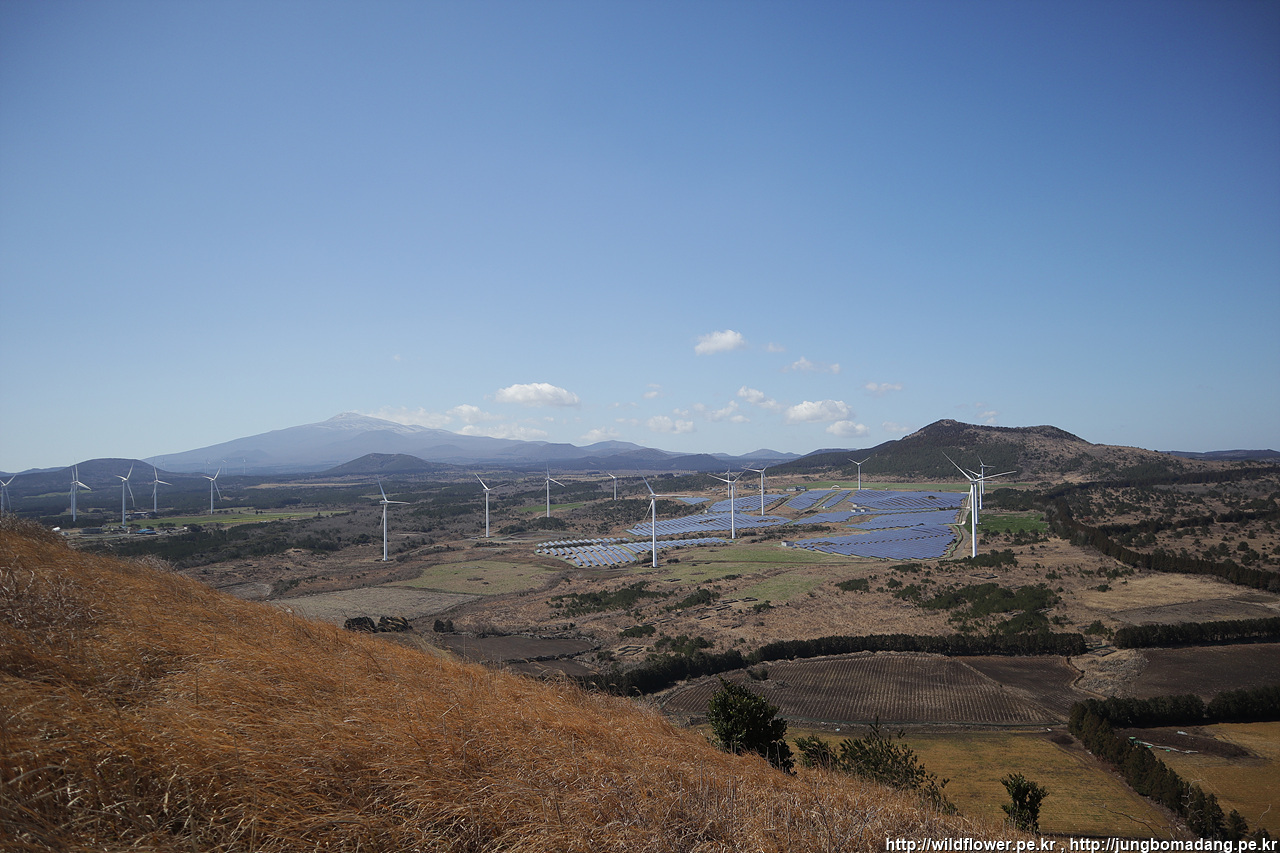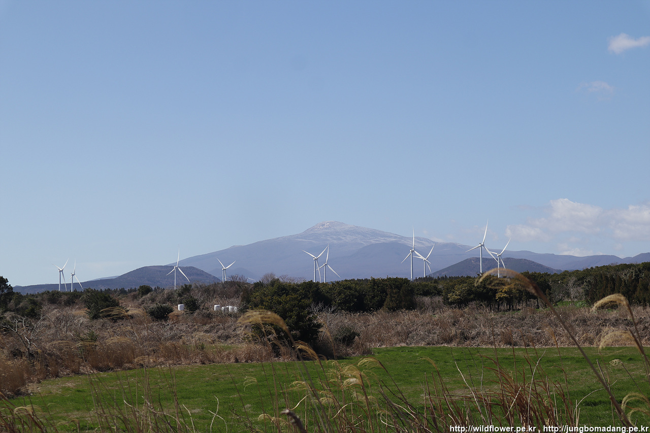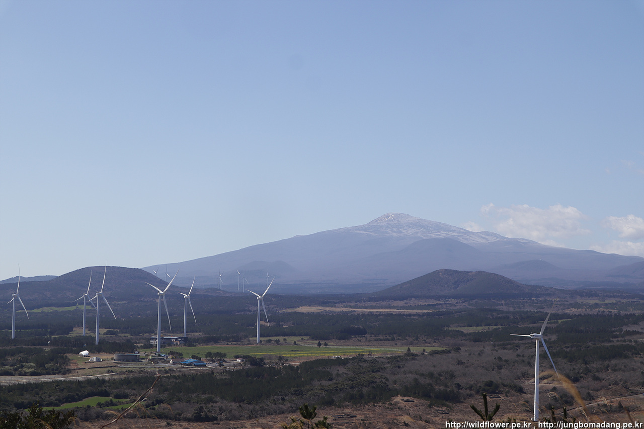 풍력발전기 뒤로 한라산