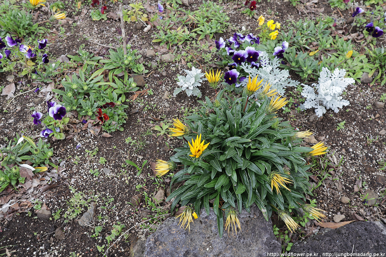 노란색 가자니아는 추운 듯 움추리고, 흰색에 가까운 백묘국도 피어 있고, 그외 팬지도 이쁘게 피어 있네요.