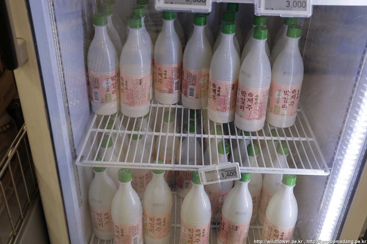 서귀포 중앙로터리에 있는 (구)서귀포터미널 옆 GS25에 침투해서 제주쌀막걸리를 째려봅니다.