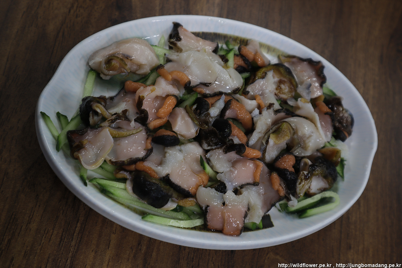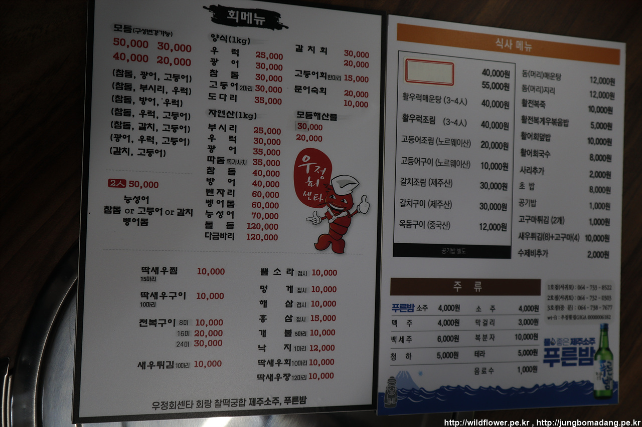 메뉴판 두둥~ 2만원짜리 모듬회(참돔, 광어, 고등어), 뿔소라, 활전복게우볶음밥을 주문합니다.