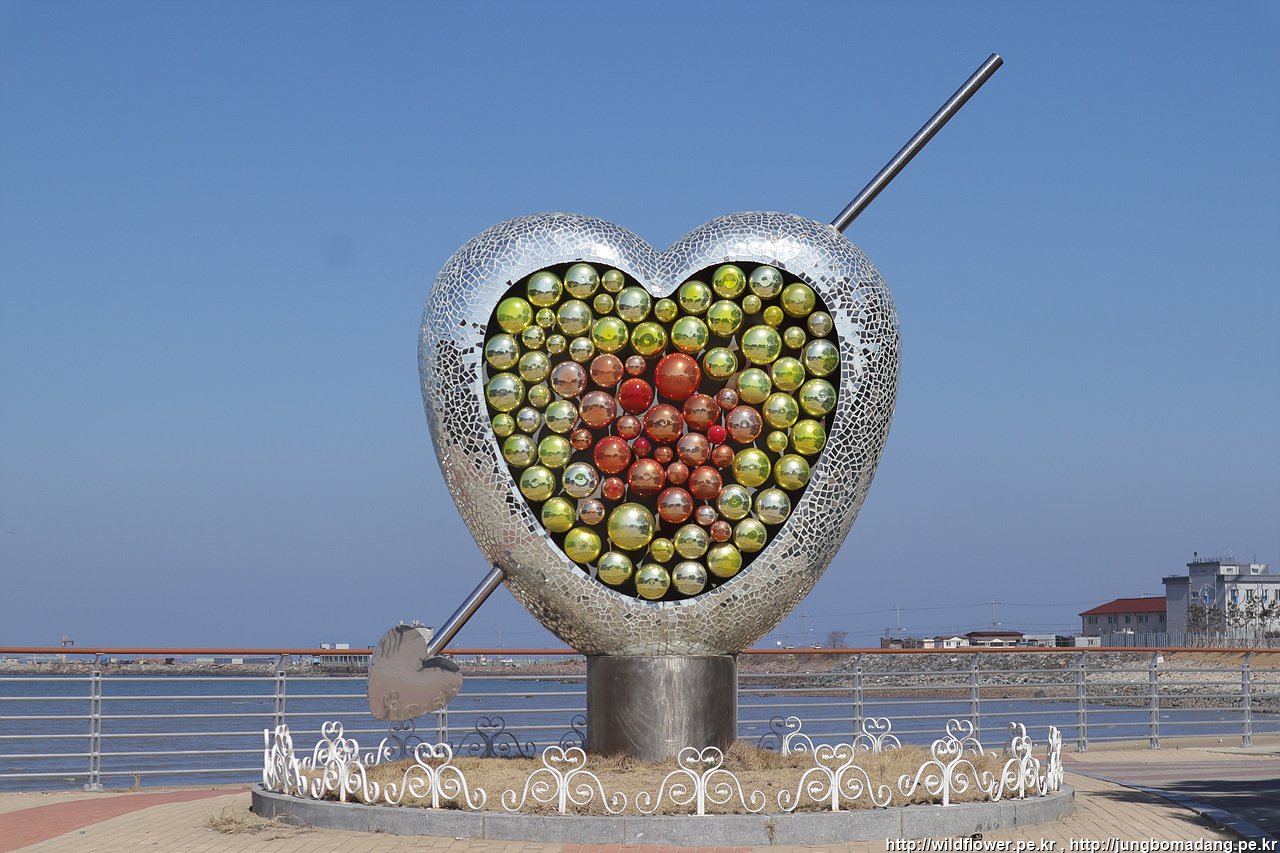 왼쪽 등자색은 개펄을 의미하고, 우측 주황색은 석양을 의미한다 합니다.
