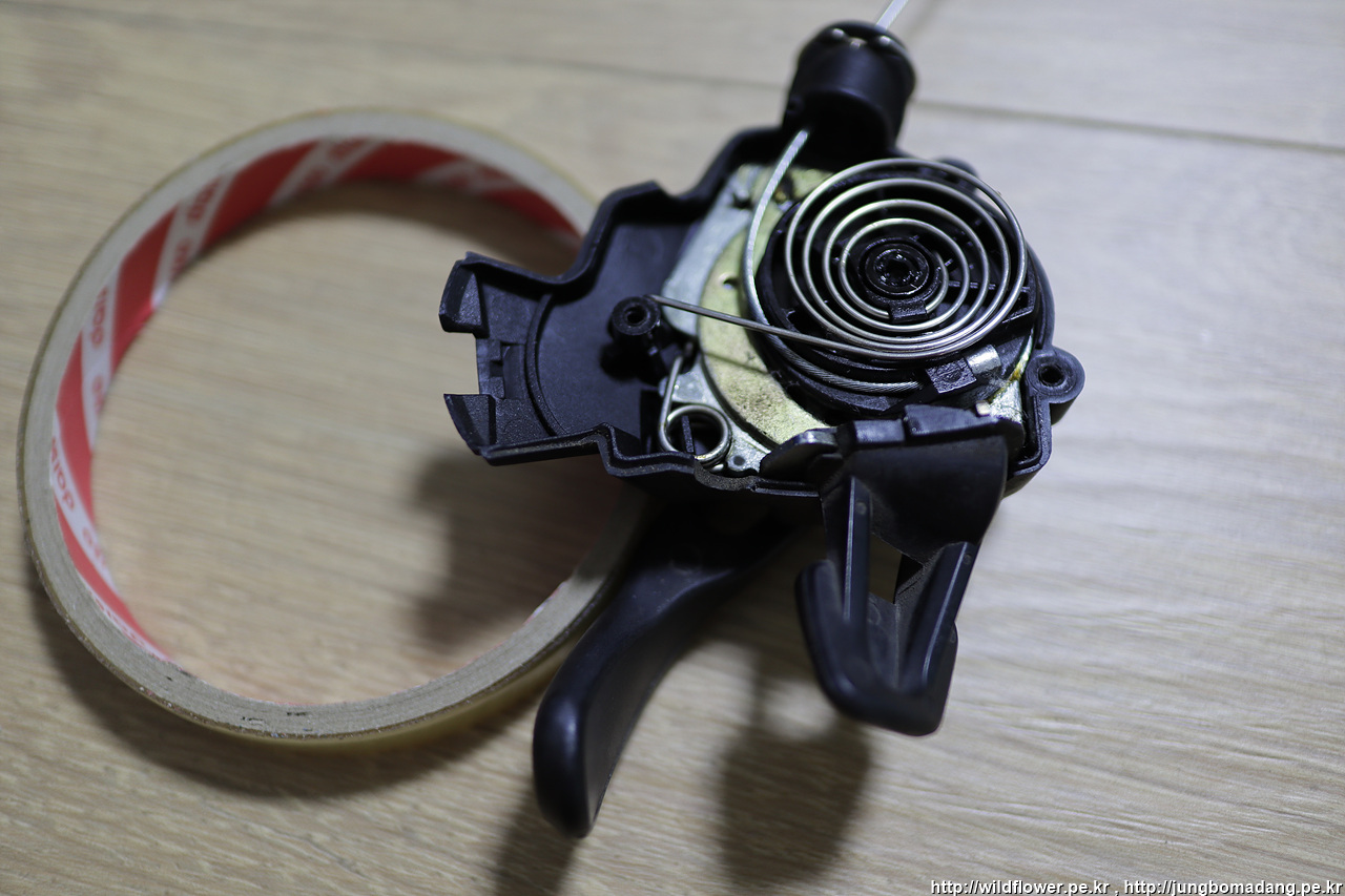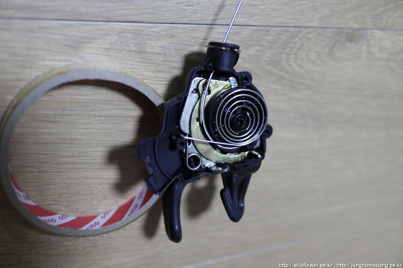 마지막으로 기어 속선을 겉선들에 끼워서 뒷쪽 변속기에 팽팽하게 끼우고 나면 됩니다. 이때 기어 겉선은 최대한 기존 것을 이용하기로 합니다.