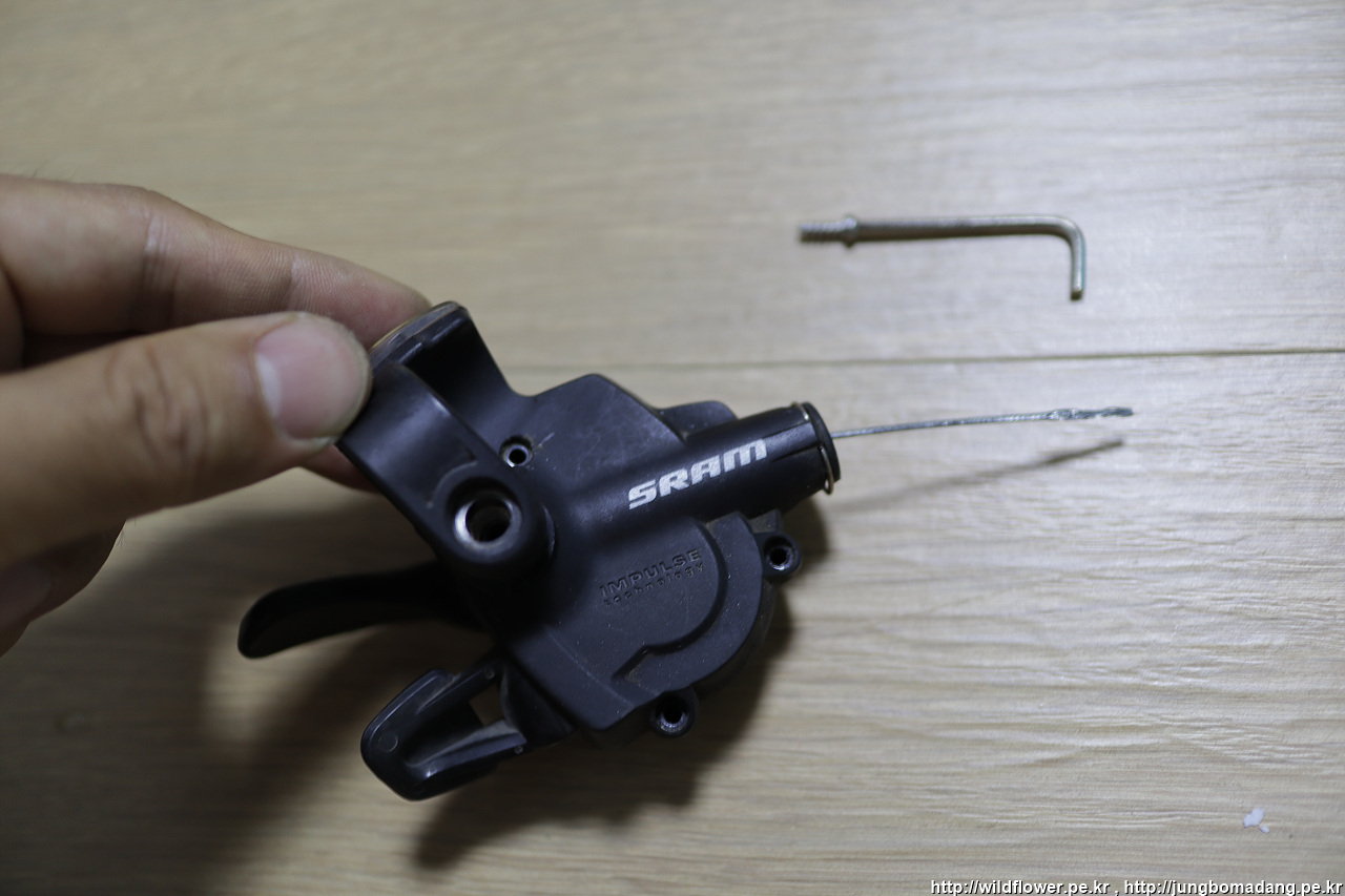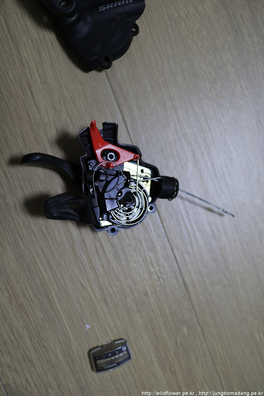기어 변속 레버를 풀고 보니 안쪽에 작은 볼트가 하나 더 있네요 ㅡ,.ㅡ 따라서 SRAM X4 기어 변속 레버는 작은 볼트는 3개를 풀어야 됩니다.