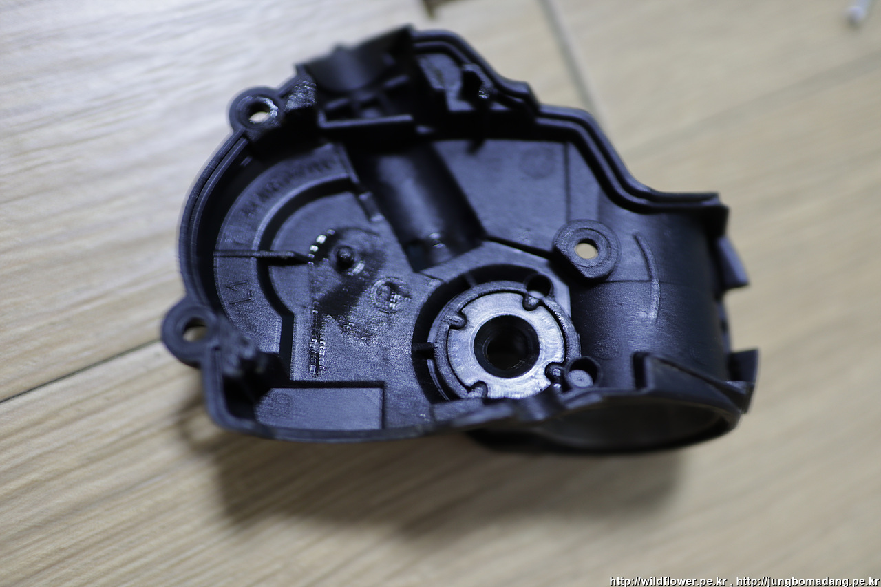 파손된 기어 겉선쪽 속선을 펜치로 끊어 버리니 분해가 된 모습