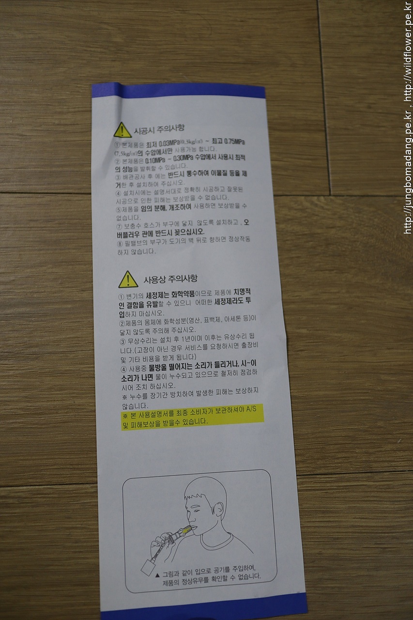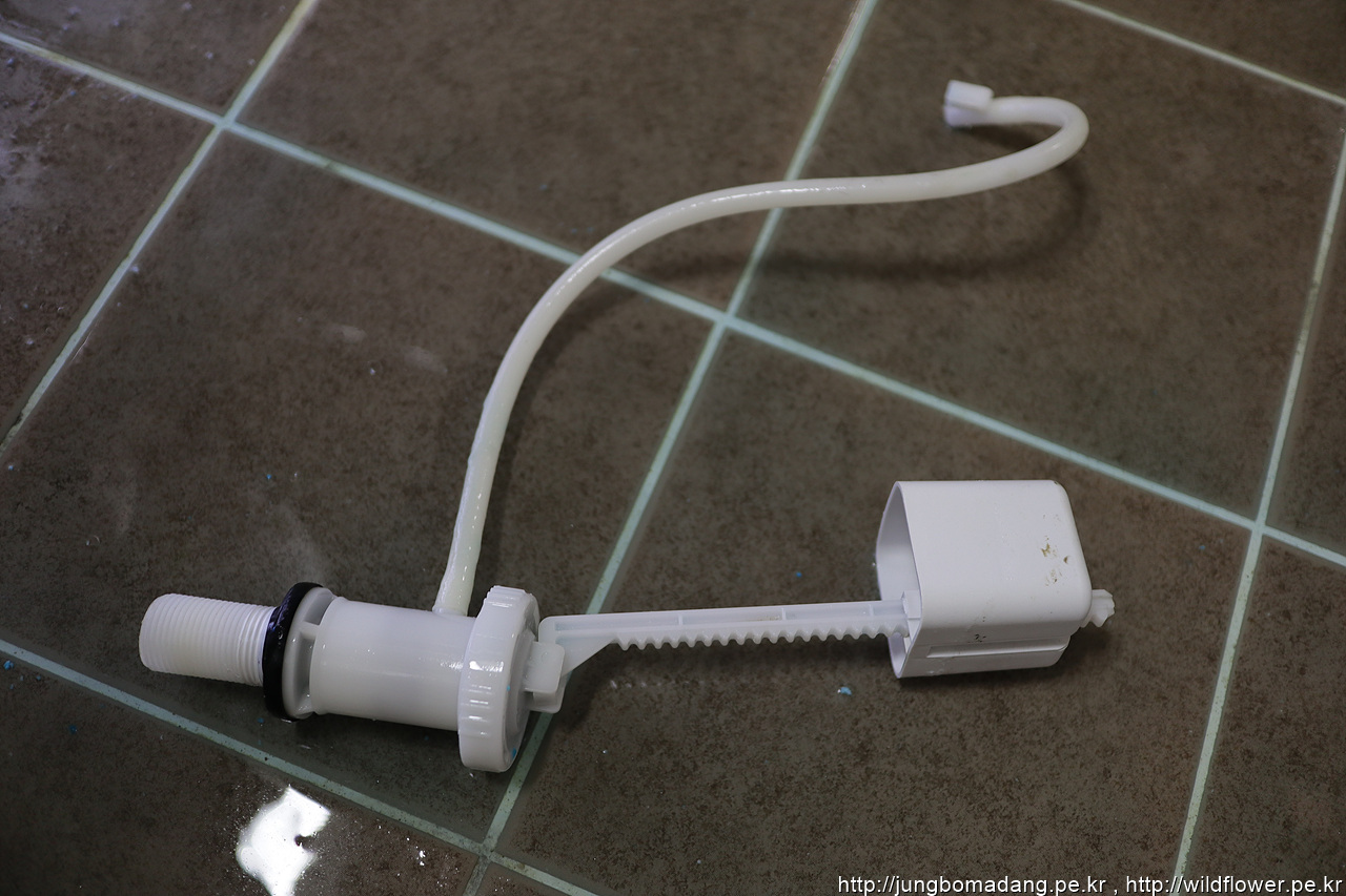 주의할 것은 제 경우 양변기의 물탱크가 별도로 존재하는 2피스 제품으로 위 부품이 교체 가능하며 만일 물탱크가 일체형 제품이면 위 부품이 맞지 않습니다. 이는 판매측에서도 공지하는 부분이니 구매에 착오 없길 바랍니다.