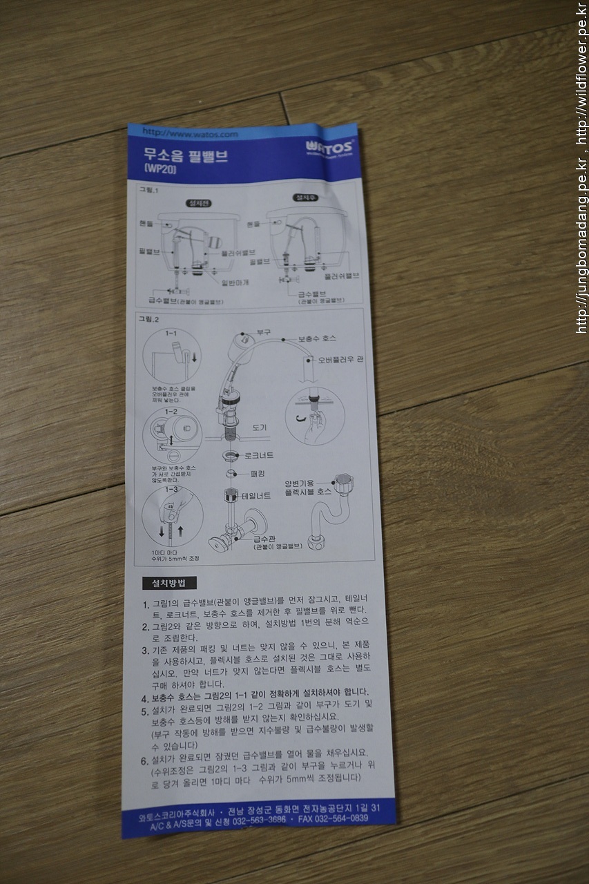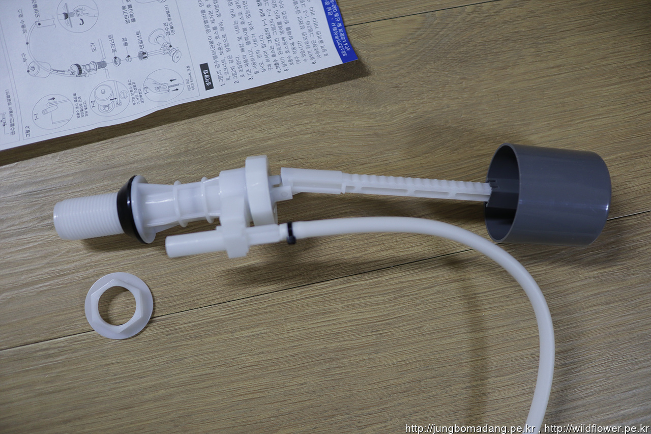 주의할 것은 제 경우 양변기의 물탱크가 별도로 존재하는 2피스 제품으로 위 부품이 교체 가능하며 만일 물탱크가 일체형 제품이면 위 부품이 맞지 않습니다. 이는 판매측에서도 공지하는 부분이니 구매에 착오 없길 바랍니다.