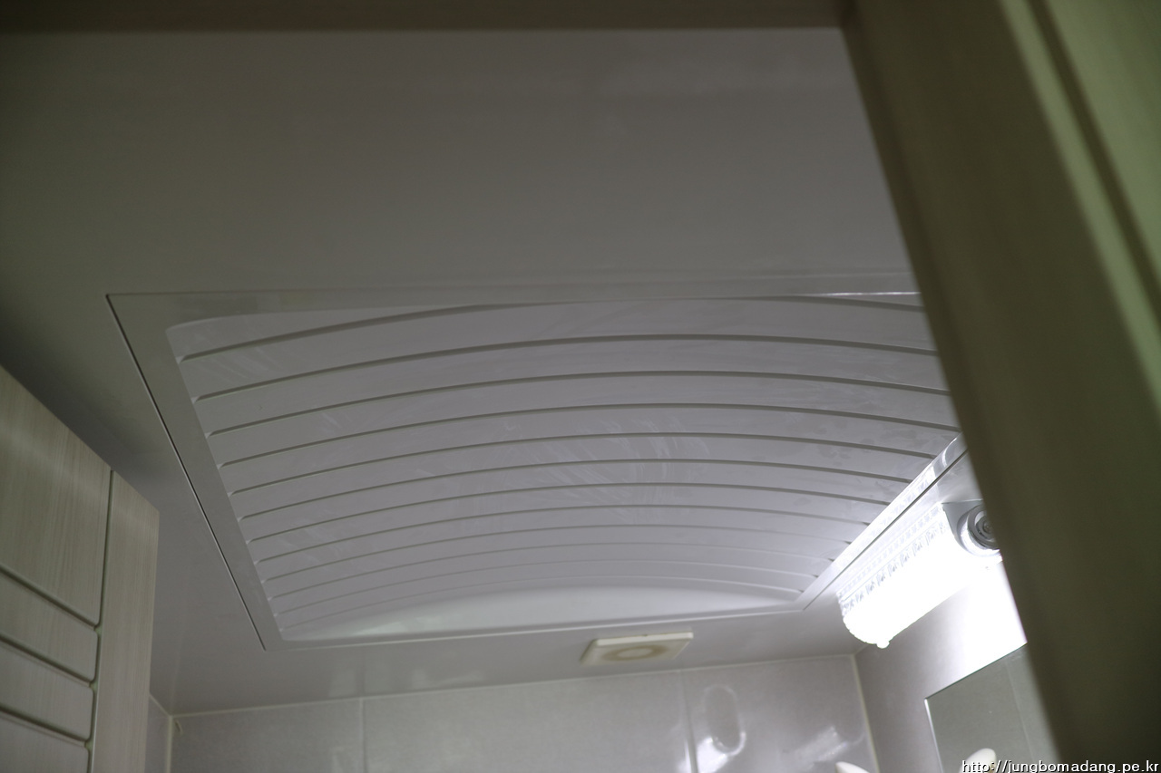 욕실이 창문이 없이 밀폐된 구조로, 환기팬을 통해 외부로 공기를 배출하는 구조입니다.
