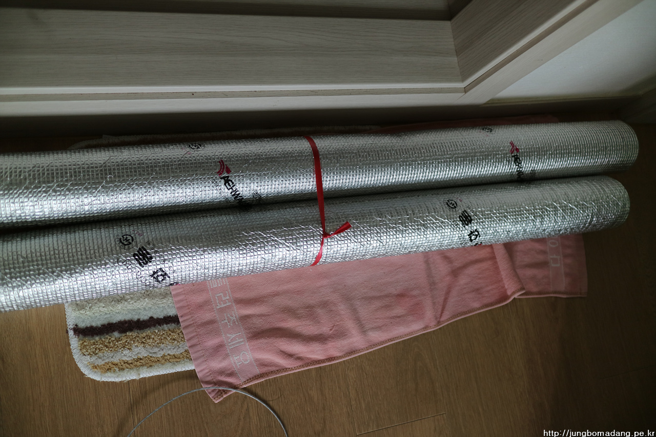 그리곤 매직테이프(회색)로 감싸서 마지막 부분은 케이블타이로 마무리!! 아! 근데 길이를 잘못 계산해서 단열재가 모자르네요 ㅠㅠ 다행히 실제 결로가 발생하는 부분은 충분히 감쌌으므로 일단 마무리 하고 나중에 필요시 남은 부분도 단열 작업을 하기로 합니다. 한시간동안 땀 뻘뻘 흘리면서 작업했네요. 우쨌든 경험도 쌓고 돈도 아끼고 좋네요! ㅋㅋㅋ