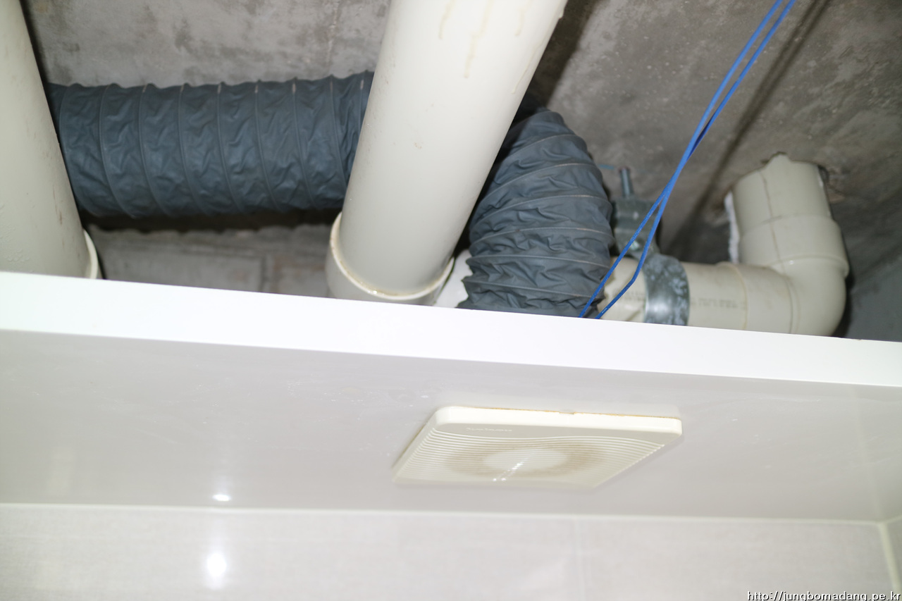 그래서 구조가 동일한 윗집 화장실에서 온수 배관이 새어 조치를 하고 나서도 어느정도 결로가 남아 있네요.